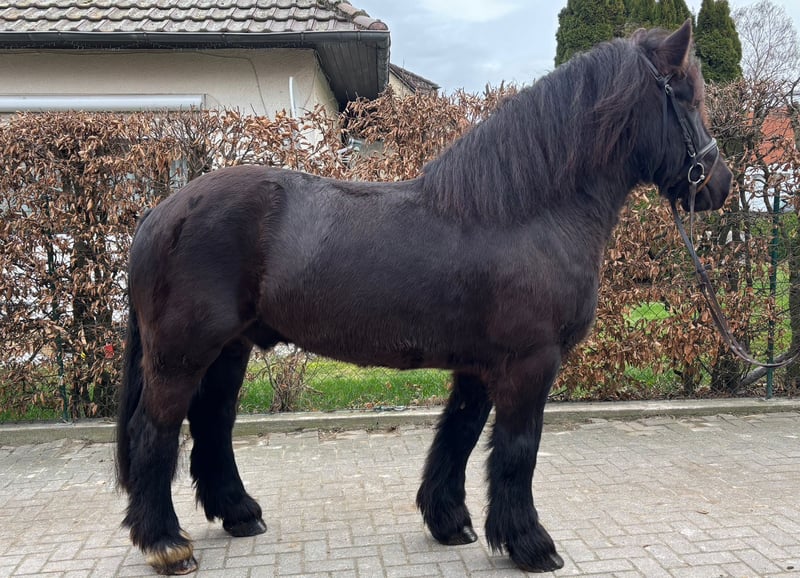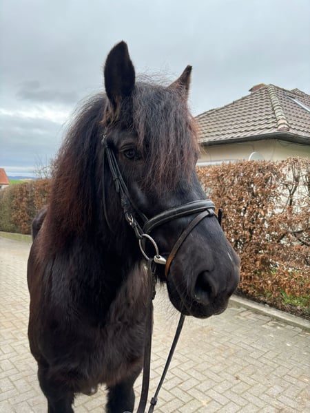 Zum Verkauf steht ein eleganter und gut ausgebildeter Friesen-Mix, geboren im Jahr 2015. Mit seinem beeindruckenden Stockmaß von 160 cm präsentiert er sich als charaktervoller und ausdrucksstarker Freizeitpartner. Der Rappe überzeugt durch sein freundliches Wesen und seine ausgeglichene Natur, was ihn sowohl für erfahrene Reiter als auch für ambitionierte Freizeitreiter zu einem idealen Begleiter macht. Der Kleine ist bekannt für seine beeindruckende Mähne und sein edles Erscheinungsbild. Er ist gut geritten, zuverlässig und zeigt sich im Umgang stets freundlich und kooperativ. Seine vielseitigen Fähigkeiten im Freizeitbereich machen ihn zu einem verlässlichen Partner für Ausritte, Spaziergänge und entspannte Stunden im Gelände. Dieses Pferd ist die perfekte Wahl für Reiter, die einen treuen und charmanten Freizeitbegleiter suchen, der sowohl durch sein Aussehen als auch durch sein angenehmes Temperament überzeugt. Bei Interesse oder weiteren Fragen stehe ich gerne für eine Besichtigung und Proberitte zur Verfügung. Nur Mobil oder WhatsApp 0171 4131543