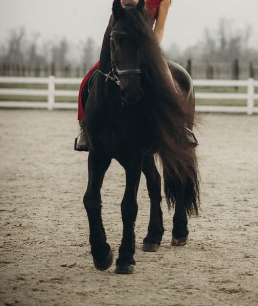 Niveau : A/L | Type : Élégant, talentueux et au cœur gentil Xander est un magnifique hongre Friesian doté d'une élégance naturelle, de mouvements expressifs et d’un tempérament doux et volontaire. Il est actuellement entraîné au niveau A/L, montrant une maîtrise fluide des changements de tempo, du travail en latéral, ainsi que des transitions aisées entre marche, trot et galop. Son équilibre, son rythme et sa présence en font un plaisir à monter et une véritable star dans n'importe quelle carrière. Sous la selle, Xander fait preuve de concentration et de grâce en dressage, tout en appréciant également le temps passé en pleine nature. Lors de sorties en extérieur, il préfère un cavalier confiant et expérimenté, car il peut être un peu alerte et sensible dans un environnement inconnu. En travail à pied, Xander brille vraiment. Il est exceptionnellement réactif au longe et en double longe, et exécute fièrement des figures de spectacle — notamment des révérences et des couchés sur commande. Ces compétences témoignent non seulement de son intelligence et de sa confiance, mais aussi du lien précieux qu’il établit avec son cavalier. Xander recherche un nouveau partenaire dévoué, qui appréciera son talent, sa sensibilité et son noble caractère — quelqu’un qui poursuivra son développement avec patience, compétence et affection.