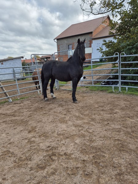 Hallo leider muss ich mich schweren Herzens aus persönlichen Gründen von meinem tollen Friesen mix Wallach trennen. Er ist ca 170cm groß und 11 Jahre alt. Er wurde von mir schonend am Boden und im Sattel ausgebildet. Am Boden liebt er zirzensik. Ich bin als er noch jung war viel mit ihm spazieren gewesen und habe viel bodenarbeit gemacht unter anderen, zirzensik, longieren, Freispringen( nicht seine lieblings Disziplin), equikinetik, Schrecktraining, kleine Trails und hängertraining. Auch war ich schon bei auswärtstraining mit ihm. Seitdem weiß er leider wenn man ihn wegfahren möchte, dann steigt er sehr ungern in den hänger. Beim verladetraining ist das einladen kein Problem. Unter dem Sattel bin ich ihn nur Schritt und Trapp auf dem Platz geritten da kann er aber auch schon vieles. Zb. Konterschulterhein, Schulterherein und Travers. In der Herde ist er sehr rangniedrig sodass er viel von den anderen herumgeschickt wird. Deswegen steht er bei mir in einer sehr großzügigen Paddockbox mit Weidegang. Dies wünsche ich mir für ihn auch weiterhin, dass er nicht in einen Offenstall muss wo er nur weggeschickt wird. Er ist ein kleiner quatschkopf und für alles zu haben, wenn er in seiner komfortzone bleiben darf. Versucht man ihn aus dieser herauszuholen wird er ängstlich und weiß sich durchzusetzen oder auch mal davon zu rennen. Deswegen nur an erfahrene, durchsetzungsfähige pferdeleute zu verkaufen. Hat man ihn auf seiner Seite und befindet man sich in einer komfortzone so ist er das liebste Pferd. Leider komme ich auf grund von zeitmangel nicht dazu ihn weiter auszubilden und deswegen steht er schon sehr lange. Ein probereiten ist nach Absprache möglich, da kann auch das verlassen der komfortzone genauer gezeigt werden. Für ein probereiten werden 40 Euro verlangt die beim Kauf verrechnet werden. Er war immer gesund und hat einen sehr starken Körperbau. Er läuft barhuf hat sehr feste Hufe und ist regelmäßig beim hufschmied Er ist regelmäßig Tetanus geimpft und auch entwurmt worden. Kommt aus den Niederlanden und hat keinen abstammungsnachweis. Bei weiteren Fragen gerne melden.