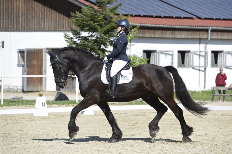 It is with a heavy heart that I have to admit that he is unfortunately not the right horse for me and that we will not be able to ride together. Lionel is a 10-year-old Friesian mix with a height of 1.74 meters. He not only has great charisma, but also impresses with very good basic gaits. He is very motivated and docile in his daily work. He has already competed in several dressage and show jumping competitions and has been placed several times. Recently, however, he has only been ridden in dressage. Lionel also loves ground work, likes to go into the field with practice and has mastered some circus movements such as compliment, lie down, Spanish salute, Spanish walk,... Lionel is definitely NOT a BEGINNER/CHILDREN'S HORSE as he loves to test! In the herd he is low ranking despite his size, he prefers to avoid stress and prefers his hay. He is very people-oriented and well-behaved. Lionel knows a box and an open stable. He is currently stabled in a box with a daily all-day paddock. Unfortunately, Lionel suffers from sweet itch, but this can be managed very well. Otherwise he is fit, has been shod 4 times, dewormed and vaccinated against tetanus/flu. My wish for him is that he finds a person who can give him the security he needs, as unfortunately I cannot give him that. More information on serious request! Also via WhatsApp.