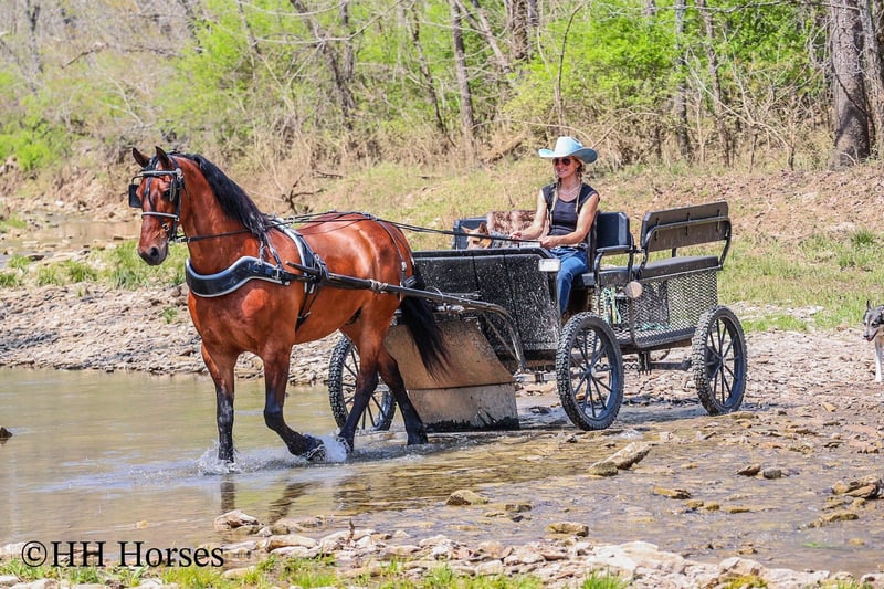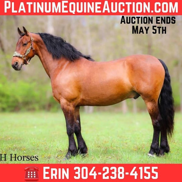 ONLINE AUCTION Place your bids at www.PlatinumEquineAuction.com Starting Bid $3500 Auction ends May 4th, 2025 Need a new saddle? Check out White Rock Saddles on our website or Facebook! This is “LIMITED EDITION”, a real civilized, well mannered, well trained, attractive, and intelligent REGISTERED BAY FRIESIAN SPORT HORSE GELDING that is broke to ride and drive. This gelding is 15.3 hands tall and is 11 years old. He has been shown in English & Western classes, he trail rides, and rides nicely in the arena. He has been out in the pastures to check cattle and been on the main roads into town. He has been through the cross country driving courses and been in women’s driving pleasure classes. He is super easy and safe as well as honest and obedient. If you want a user friendly horse that anyone can tack up and ride and one that anyone can hitch up and drive, then he is for you. He unloads in new territory and will ride off as if he has been there many times before. This type of horse doesn’t often come up for sale. He is smart and loves attention and people. He loves to ride and be out in the woods. He has been in parades, at the state parks, and out in the deep timber. He has tons of heart, stamina, and ride. He is sure footed, comfortable, responsive, and well mannered. Don’t miss out if you want an extremely nice registered FRIESIAN SPORT HORSE GELDING. For more info or to make a Buy It Now offer contact HH Horses Erin 304-238-4155 Located in Flemingsburg, KY. ONLINE AUCTION Place your bids at www.PlatinumEquineAuction.com Starting Bid $3500 Auction ends May 4th, 2025 Need a new saddle? Check out White Rock Saddles on our website or Facebook!