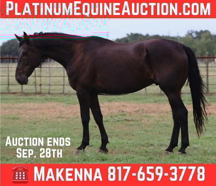 ONLINE AUCTION Place your bids at www.PlatinumEquineAuction.com Starting Bid $3500 Auction ends September 28th, 2025 Need a new saddle? Check out White Rock Saddles on our website or Facebook Meet Dolo, the definition of a gentle giant. This stunning black Friesian cross gelding stands an impressive 17 hands tall and has the kind of presence that stops people in their tracks. But behind all that size and beauty is the sweetest, most easygoing personality you could ask for. At 12 years old, Dolo is seasoned, safe, and dependable. He has a calm, kind nature that makes him a pleasure to be around, whether you’re grooming him in the barn or heading out for a relaxing ride. He’s confident on the trails, not in a hurry, and gives you that secure, trustworthy feel every time you climb in the saddle. Dolo is the type that wins people over instantly: • 17hh tall – A true head-turner with size and elegance • Friesian/Percheron cross – Grace, beauty, and brains in one package • Gentle & kind – As sweet as they come, perfect for leisure riding • Steady on trails – Relaxed, easygoing, and confident • Seasoned & dependable – A great partner for years to come Whether you want a safe trail partner, a stunning pleasure mount, or just a kindhearted horse to enjoy, Dolo checks every box.📍 Located in Lipan, TX 🚚 Nationwide transport available, including routes to Hawaii and Canada. Call or text Makenna Hartzell 817-659-3778 to meet Dolo—you don’t find gentle giants like him every day! ONLINE AUCTION Place your bids at www.PlatinumEquineAuction.com Starting Bid $3500 Auction ends September 28th, 2025 Need a new saddle? Check out White Rock Saddles on our website or Facebook