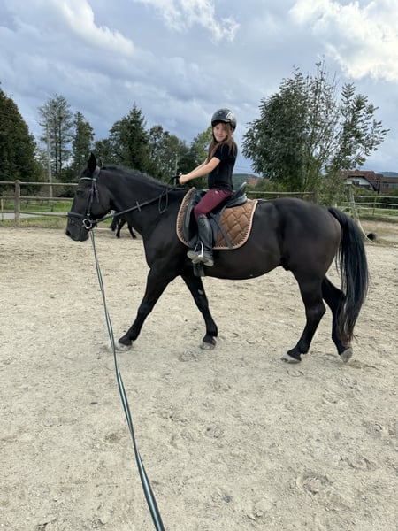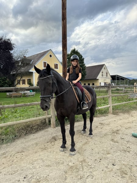 2010 Chirocco – strong black gelding, approximately 156 cm Chirocco is a black gelding standing at approximately 156 cm, who, thanks to his strong build, can accommodate larger riders well and is suitable as a solid weight carrier. He is not an absolute beginner or children's horse, but he is very pleasant to ride for riders with at least a novice level. With the right experience, a clean A-level dressage can be developed with him, and a small jumping course can be tackled. ✅ Trial rides possible by prior appointment. 📩 If interested, feel free to contact via message.
