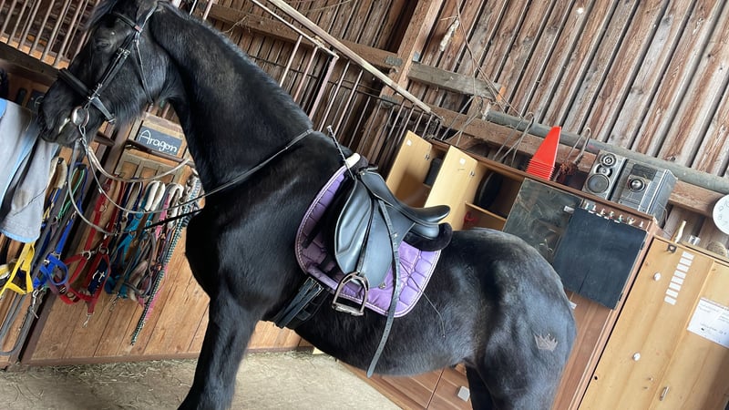 Leider muss ich mich aus privaten Gründen von meinem lieben Friesen trennen , er ist eine Lebensversicherung, am Platz sowohl im Gelände . Keine Unarten und immer lieb .
