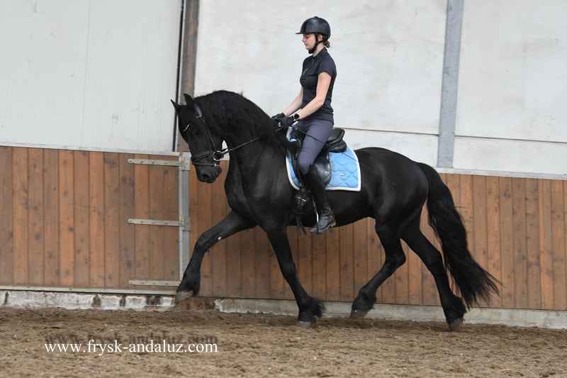 https://www.frysk-andaluz.com/nl/paard/tjisse/ Wat een ongelooflijk fijn paard is dit! Tjisse is een jonge ruin die nog wat jeugdig aandoet maar wel beschikt over een dikke bos manen, zeer goede bewegingen en een fantastisch karakter! Tjisse is een paard wat heerlijk te rijden is, hij loopt ontspannen en voor zijn jonge leeftijd al heel fijn over de rug. Hij is voorwaarts en wilt graag werken maar daarnaast is hij nuchter en erg goed bewerkbaar. Tjisse is een ruwe diamant die alleen maar mooier en beter gaat worden. We zien hem dan zeker hoge ogen gaan gooien in de wedstrijdring in de toekomst, maar daarnaast is hij ook zeker geschikt voor een heerlijke buitenit. In de omgang is Tjisse ook een erg vriendelijk en lief paard en daarom zeker een maatje voor het leven! Hij is interessant gefokt en het is een zoon van Menne 496 x Uldrik 457 x Sape 381. Zijn moeder is een Kroon AA merrie van 1.65 m groot / Ster+Preferent / Ster+Preferent uit merrie stam 065. Tjisse is röntgenologisch in orde bevonden.