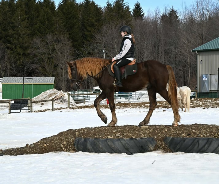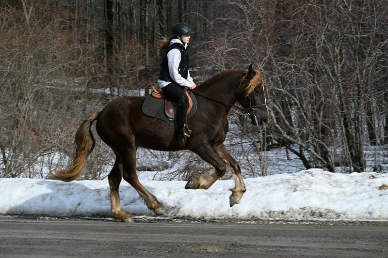 "AVAILABLE ON ONLINE HORSE AUCTION AT www DOT PlatinumEquineAuction DOT com BIDDING OPEN NOW thru SUNDAY | MARCH 8TH! *Final price will be determined on auction site* CONSIGNOR CONTACT INFO: Wolcott's Versatility Horses and Training 585-734-0169 LOCATION: Warsaw, NY ** 2 𝑾𝑬𝑬𝑲 𝑮𝑼𝑨𝑹𝑨𝑵𝑻𝑬𝑬** Here is the Friesian sport horse gelding with the perfect hair, Fabio. Standing at 16/16.1hh and just 4 years old, he is a great size for everyone to enjoy. He knows his leads and can canter a nice circle in the arena. He is very soft in the bridle and has a natural self-carriage. Fabio’s ground manners are excellent; he will stand all day tied with no fuss. Around the farm, he has been exposed to various farm animals, tractors, 4-wheelers, and vehicles without any issues. Fabio will trail ride alone or in a group and go anywhere you point him. Fabio will cross logs, bridges, water, and anything else you may encounter on the trail without hesitation. We have put him through our obstacle course, and he easily passed everything! Fabio is traffic-safe and good with tarps, stock whips, and bridges. Fabio will definitely get you noticed out in public; he already gets compliments all the time. He rides in a plain snaffle and works off your legs easily. He has been ridden in English and Western and is the same horse every time you bring him out of the stall. Fabio has also been started over fences. Beginners and advanced riders have ridden him. Fabio stands well for the vet, clipping, and bathing. He sells 100% sound with no vices. We welcome you to come out to the farm and try him out. Contact Dayton at 585-734-0169 for more information on Fabio. Visit our website Wolcotts horses and training and follow us on Facebook!