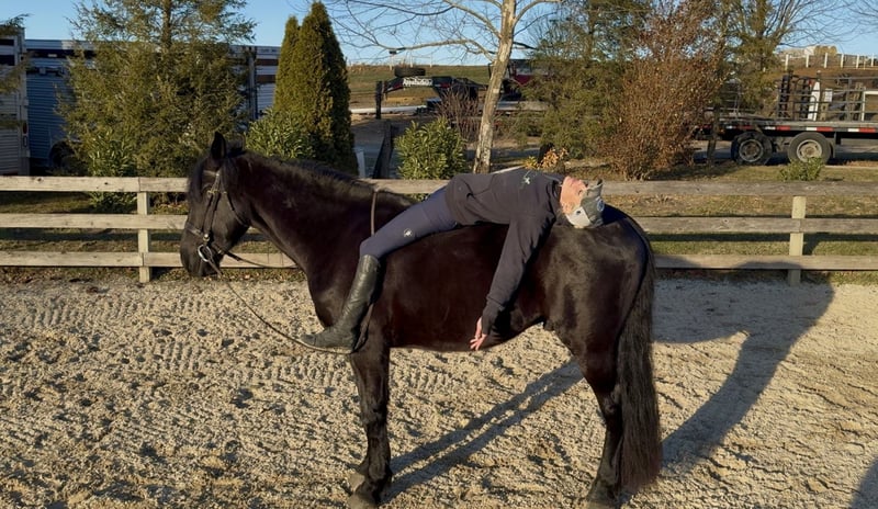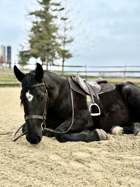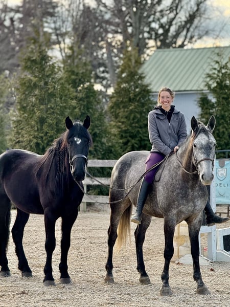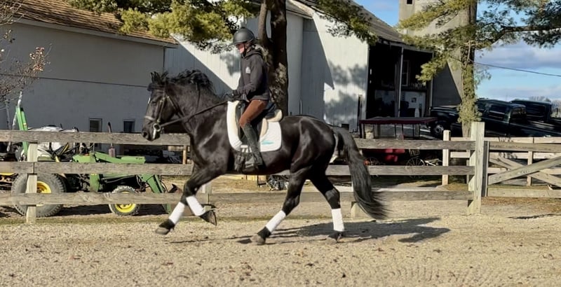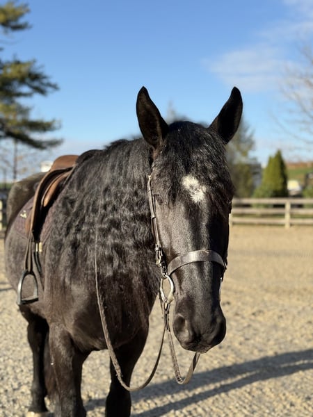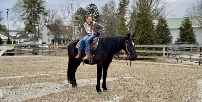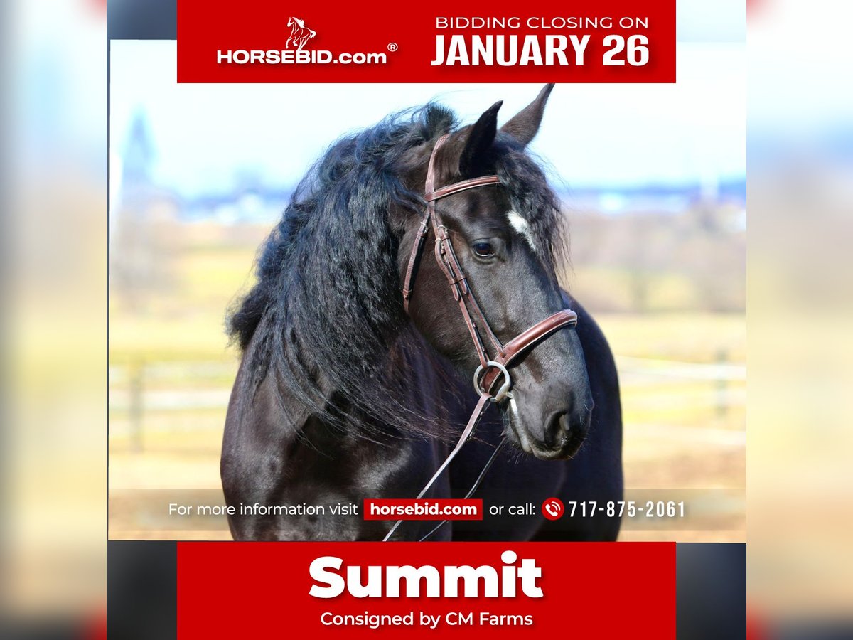 𝐉𝐀𝐍𝐔𝐀𝐑𝐘 ⭐️𝑨𝒍𝒍 𝑺𝒕𝒂𝒓 𝑳𝒊𝒏𝒆𝒖𝒑⭐️ Happening now thru MONDAY | JANUARY 26th - Available EXCLUSIVELY on HorseBid's website! For more details and to register visit: www.Horsebid.com CONSIGNOR CONTACT: CM Farms 717-875-2061 LOCATION: Gap, PA BREED: Friesian/Perch REGISTERED: No REGISTERED NAME: Summit COLOR: Black HEIGHT: 16-16.1 AGE: 4 GENDER: Gelding Meet Summit! This gelding is a 4-year-old, jet-black Friesian/Percheron cross with hair for days and an “in-your-pocket” personality. He stands right around 16–16.1 hh and is put together beautifully, with a solid brain to match. More fondly known around the barn as “Baby Summit,” he’s the biggest lovebug and still in that lanky baby stage of growing. Despite his young age, Summit acts like he’s been around the sun 100 times—he’s truly as quiet and safe as they come. Seriously, you can canter him around bareback on a loose rein while shaking a flag on his back, and he’ll just carry on. He rides Western and English, drives, and even lays down on command! This boy is precious in every way, and we want the very best home for our Baby Summit. Under saddle, Summit has the basics down, and if you can hold the reins, you can ride him. He’s the definition of safe and quiet, suitable for a wide variety of riders. He takes care of everyone who’s sat on him, and I don’t think being naughty or disobedient is even in his DNA. His favorite gait is probably moseying around on a loose rein, but he’ll pick up and put in the work when asked. He’s never had any other answer than yes—he wants to please his person and is so chill and willing that he’ll go along with whatever craziness you throw at him. He has been thoroughly desensitized to tarps, flags, smoke, dogs, kids, other farm animals, equipment, traffic, and just about everything else you can think of. He’s unflappable, with a confidence most horses take years to develop. He’s an easy ride in every way—extremely comfortable in all three gaits, responsive to aids, and able to take a joke. Throw that friend who’s never ridden on him, the nervous rider, or even granny out for a hack—Summit is reliable and safe. He will not disappoint! On the trail, Summit is equally amazing. He enjoys getting out to experience nature with his person and his horse buddies. Load him on the trailer, and he’ll unload anywhere you take him as the same steady boy, just happy to be included. He’s seen everything from wildlife, bikers, and hikers to traffic, creeks, winding wooded trails, and open fields—and he takes it all in stride. He’ll lead the group or bring up the rear, never in a hurry and never getting worked up. He’s the kind of horse you can crack a cold one on and leave your worries at home with. A fun, trustworthy ride you can drop the reins on and canter through the fields. Summit is the same horse every time you pull him out, and he has an incredibly bright future. In the barn, Summit is a big baby in the best way. He would live in your pocket if he could, and once he bonds with you, he’ll happily rummage around looking for a treat. He stands like a gentleman on the ties for grooming, bathing, and tacking up—or spend a couple of hours giving him a spa day and braids, and he’ll love every second. He will quite literally stand next to you while you use power tools (watch the video 🤣) just to be close and give moral support. He’s curious and friendly while always remaining respectful, and he’s a joy to handle. Summit doesn’t have a mean bone in his body, and we absolutely adore him. He makes the best barn mascot and is truly everyone’s favorite guy. If you’ve been looking for that special young horse who will love you as much as you love him, don’t miss out on Summit!