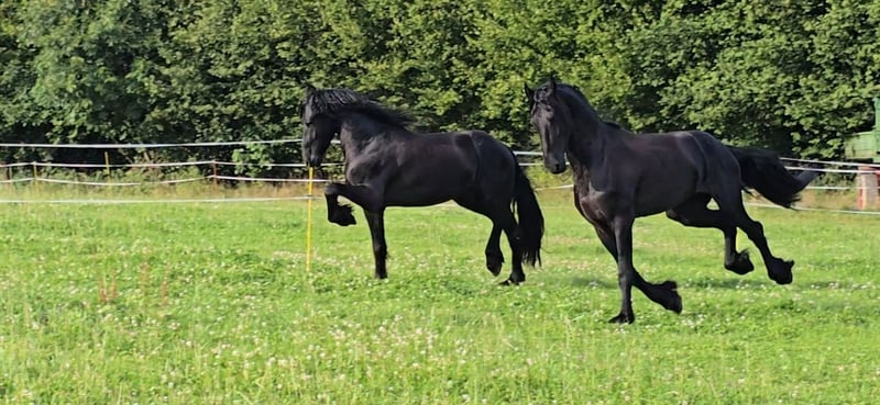 Parzival aus dem Ohrnbachtal – traumhafter 4-jähriger Friesenwallach mit Herz, Charme und Perspektive Rasse: Friese Abstammung: Aarnold 471 × Abel 344 Geburtsjahr: 2021 Stockmaß: ca. 1,66 m Farbe: Rappe Standort: 64720 Michelstadt Preis: ... Unser wunderschöner, selbstgezogener Friesenwallach Parzival aus dem Ohrnbachtal sucht ein liebevolles neues Zuhause. Er verzaubert nicht nur durch seine ausdrucksstarke Erscheinung, sondern auch durch sein sanftes, menschenbezogenes Wesen und seine Freude an der Arbeit. Als Fohlen wurde er auf der Zuchtshow in Schlüchtern als bestes Fohlen prämiert – und schon damals zeigte er, dass er etwas ganz Besonderes ist. Behutsam aufgezogen und mit viel Herzblut ausgebildet, überzeugt Parzival heute mit feiner Rittigkeit, tollen Grundgangarten und einer A*-Dressurplatzierung. Er ist fein an den Hilfen, lernfreudig, aufmerksam und dabei immer bemüht, alles richtig zu machen. Seine tägliche Arbeit umfasst Traversalen, Schenkelweichen, Rückwärtsrichten und erste fliegende Wechsel – er ist immer mit Freude dabei. Auch im Gelände ist er zuverlässig und gelassen und hat ebenso Spaß an dem ein oder anderen Sprung. Parzival ist barhuf, schmiede- und verladefromm und kennt sowohl Gruppen- als auch Boxenhaltung. Ein wahrer Herzensbub, der die Nähe zum Menschen sucht und am liebsten stundenlang geschmust werden möchte. Auch im Umgang mit Kindern ist er sehr fein und lässt sich auch von ihnen putzen und führen. Ein Traumpferd für Reiter, die sich einen sensiblen, ehrlichen und talentierten Partner fürs Leben wünschen. Video auf Anfrage.