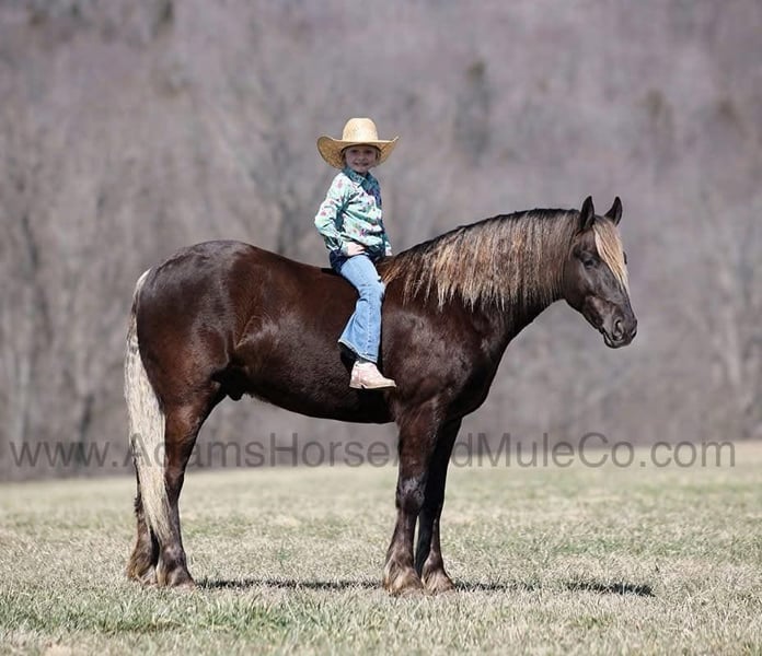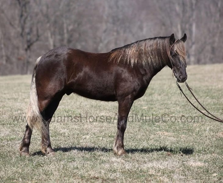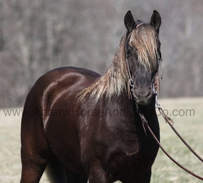 Go to visit our website for more pics and a video. AHAMC has been in the horse business and sold horses over the internet since 2005. We have a long track record of success with hundreds of happy customers. We work hard to match riders with the correct horses and specialize in beginner safe, family friendly horses that have been used and checked out by our family! We can set up transportation anywhere in the US and look forward to working with you. Wow talk about different! Dollar is one of the most unique geldings that you will find! He is a Silver Dapple/Chocolate flax mane and tail registered Friesian Sport Horse, Gelding that is stocky built and is standing around 15H! He is 4 years old with a mind that is wise beyond his years! Dollar has been ridden around the ranch, checked cows and rode fences. He is a laid back type of Friesian horse that will just walk out down the trails with no hesitation. He has been on camping trips and has been ridden by all ages of riders. When out on the ranch or going down the trails he will cross creeks, ditches, logs and navigate rough rocky areas. He is safe in traffic safe whether that be trucks or cars. He walks on a loose rein, has a nice jog, his lope is slow and collected plus he lopes very nice circles on a loose/draped rein! He has been exposed to all kinds of wildlife such as deer or turkey. He is athletic and would be a great horse to put under English tack to go over the rails with. He pastures well with others and rides the same after time off. Dollar is versatile, easy to ride and with a personality that is easy to love! Feel free to call Eric 606-308-2461 with any questions! Go to visit our website for more pics and a video. AHAMC has been in the horse business and sold horses over the internet since 2005. We have a long track record of success with hundreds of happy customers. We work hard to match riders with the correct horses and specialize in beginner safe, family friendly horses that have been used and checked out by our family! We can set up transportation anywhere in the US and look forward to working with you.