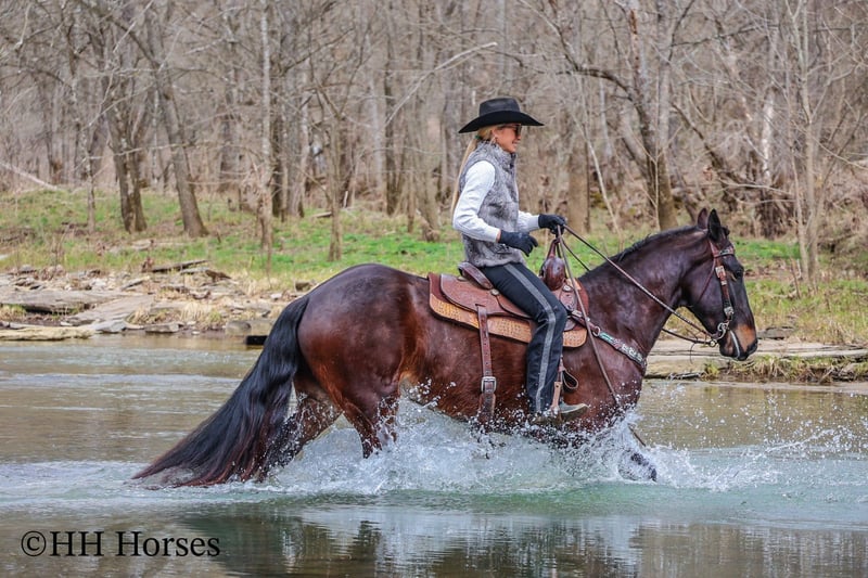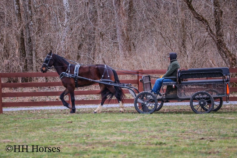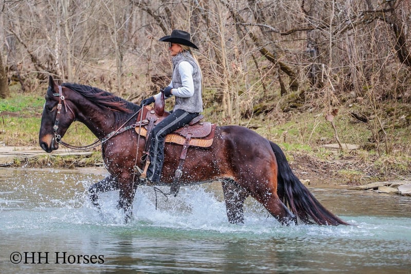 ONLINE AUCTION Place your bids at www.PlatinumEquineAuction.com Starting Bid $3500 Auction ends March 23rd, 2025 Need a new saddle? Check out White Rock Saddles on our website or Facebook! This is “MOONSHINE”, a real stylish, extra fancy moving BAY FRIESIAN QUARTER HORSE CROSSBRED gelding that is broke to ride and drive. This handsome guy stands 16 hands tall and is well proportioned with lots of eye appeal. He is 4 years old. He is versatile and has been ridden English and Western. He has been working in the stockyards to pen back cattle and he has been out on the trails. He is a super pleasant natured horse with lots of ride and a very floaty way of moving. He is talented, well trained, smart, and athletic. This gelding will cross water, he is traffic safe, and he will travel through rocky terrain without any hesitation. He will lope nice circles, catch his leads, stop easy, and back up. He stands to harness, hitch, tack, mount, and groom. He is quiet natured to be around and enjoys attention. This gelding has lots of class, ability, and sense. Located in Flemingsburg, KY. For more info or to make a Buy It Now Offer contact HH Horses Erin 304-238-4155 ONLINE AUCTION Place your bids at www.PlatinumEquineAuction.com Starting Bid $3500 Auction ends March 23rd, 2025 Need a new saddle? Check out White Rock Saddles on our website or Facebook!