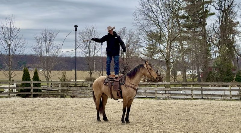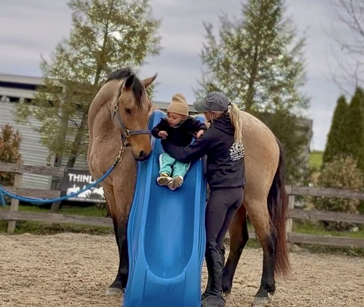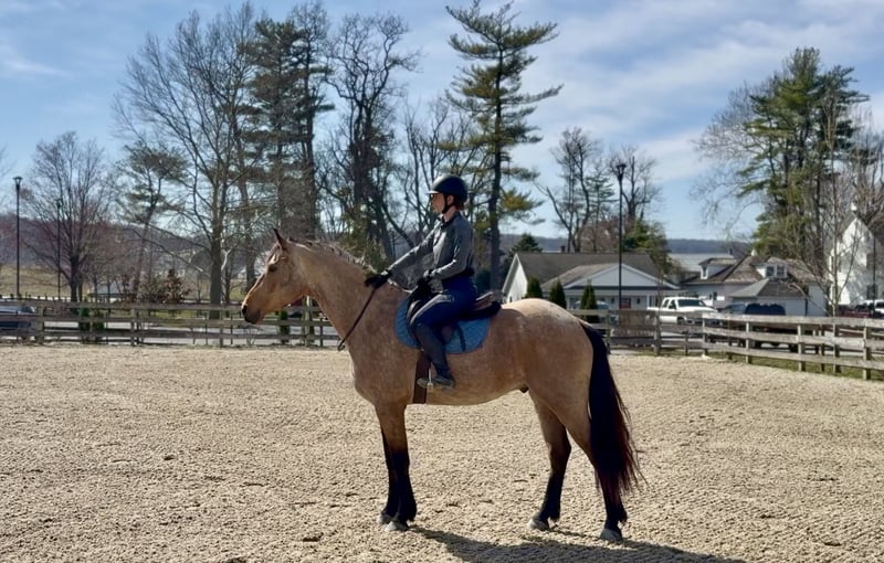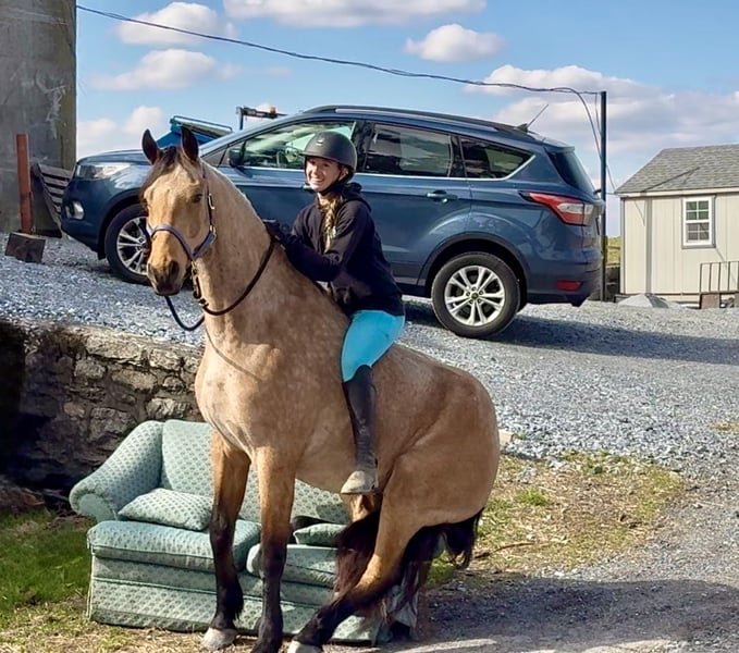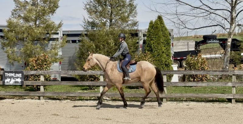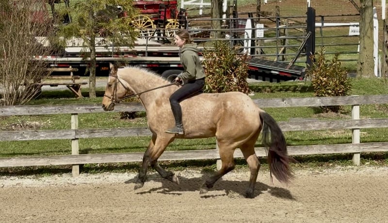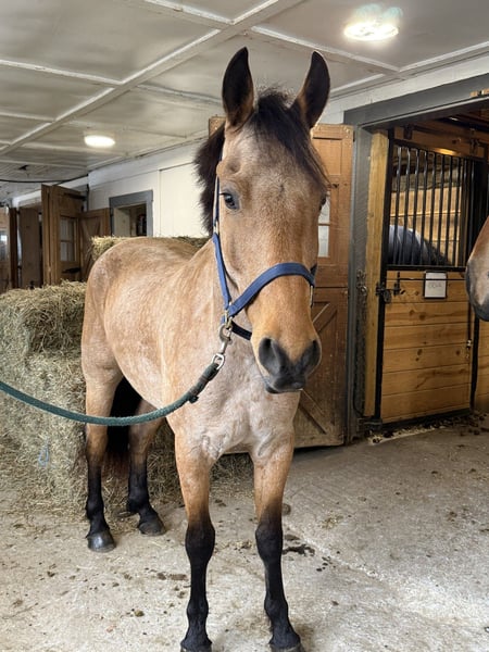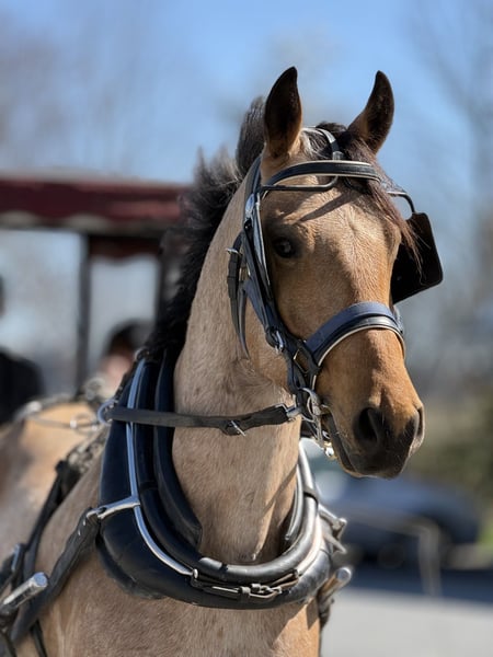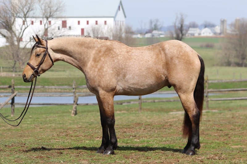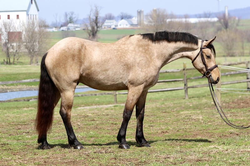 🌟𝑨𝒑𝒓𝒊𝒍 𝐀𝐋𝐋 𝐒𝐓𝐀𝐑 𝐋𝐈𝐍𝐄𝐔𝐏🌟 Happening now thru MONDAY | APRIL 6th - Available EXCLUSIVELY on HorseBid's website! For more details and to register visit: www.Horsebid.com CONSIGNOR CONTACT: CM Farms 717-875-2061 LOCATION: Gap, PA BREED: Friesian/QHx REGISTERED: No REGISTERED NAME: Dustin COLOR: Buckskin HEIGHT: 16.1 AGE: 5 GENDER: Gelding ✨ Meet Dustin ✨ Special doesn’t even begin to describe how exceptional this horse truly is. Dustin is a once-in-a-lifetime kind—the type you spend years searching for and very few ever actually find. He is a 5-year-old standing 16.1–16.2hh, Friesian/QH cross, and he is the perfect blend of both worlds. He carries the striking beauty and presence of the Friesian, paired with the athleticism, versatility, and usability of the Quarter Horse—and he has the kind of mind that everyone is hoping for but rarely gets. His buckskin coloring, complete with dapples and soft light brown eyes, makes him absolutely unforgettable. He is the kind that turns heads everywhere he goes and leaves a lasting impression. Dustin was blessed not only with exceptional looks, but with an even better mind and personality to match. He has experience riding English, Western, and bareback, has packed kids, handled therapy-style rides, and is broke to drive. On top of that, he is a true, seasoned trail horse in every sense. To add to his already impressive resume, Dustin knows the kind of fun extras everyone loves—he will sit like a dog, lay down on command, and moves over to the block to make mounting effortless. To say he can do it all would be an understatement—he is versatile, broke, and genuinely enjoyable in every way. On the ground, Dustin will win you over before you ever step in the saddle. He is kind, curious, gentle, and incredibly level-headed. His demeanor is quiet and steady, yet he is personable and engaging—always happy to meet you at the gate. He is the type that wants to be your partner. His manners are impeccable; he is respectful, easy to handle, and never pushy, yet still affectionate and people-oriented. He truly enjoys attention—you can spend hours grooming, bathing, or braiding him, and he is content the entire time. He is exceptionally tolerant and trustworthy. Kids, dogs, commotion—it does not bother him. You can have children around his legs or sitting on him while grooming, and he stands quietly and patiently through it all—even the occasional chaos. He loads easily, stands quietly to tack, and will lower his head for the bridle. He gets along with every horse in the barn, is quiet in his stall, and is always easy to catch, lead, and turn out. He is a gentleman for the farrier and veterinarian and handles every situation with ease. Horses this straightforward and drama-free are hard to come by. If his disposition on the ground wasn’t enough, just wait until you ride him. Dustin is incredibly well broke with a balanced, comfortable walk, trot, and canter both directions. He has a natural rhythm and an easy, uphill way of going, with a canter that feels like a rocking horse. He is soft, responsive, and consistent—he has never offered to take a wrong step. He rides both English and Western, neck reins and direct reins, moves off your leg, side passes, and transitions smoothly and correctly. He is safe enough for anyone to enjoy, yet talented enough to continue in any direction. Whether you are looking for a dependable trail partner, a family horse, or something to further develop in a discipline like dressage, Dustin has the ability and the mindset to excel. He has also been started lightly over fences and shows natural honesty and athleticism. Dustin is the kind you can ride bareback on a loose rein and trust completely. He is never in a hurry, never anxious, and always willing. He will quietly go along when asked, yet step up and perform when you want more. There are not many horses his age that combine this level of training, rideability, and composure. On the trail, Dustin is truly in a league of his own. He is the one everyone chooses because you know the ride will be both enjoyable and safe. Traffic, dogs, bikes, water, bridges, tarps, equipment—nothing phases him. He has been hauled off property, ridden down busy roads, and exposed to a wide variety of environments, and he handles it all with the same steady, confident attitude. He rides out alone or in a group and is always reliable. Under harness, Dustin is just as impressive. He is safe, steady, and confident both on and off the road, including in heavy traffic. He has been driven around vehicles and commotion without hesitation and stays relaxed and level-headed throughout. He is the kind you can trust with kids or inexperienced drivers—patient, forgiving, and always willing to do the right thing. He adjusts easily to the pace you ask for and is not hot or in a hurry. He is not a racehorse—he is a true pleasure horse, the kind that looks sharp and eye-catching in the cart, yet feels like a quiet, relaxing Sunday afternoon to drive. You can put absolutely anyone on him, and he will take care of them. He rides quietly on the buckle, stays consistent, and gives his rider confidence. He has that rare ability to feel like a seasoned, finished horse well beyond his years. What makes Dustin truly special, though, cannot be trained—it is who he is. He has a genuine kindness, a willing nature, and a quiet confidence that you feel every time you are around him. He tries for you, meets you where you are, and gives you everything he has. We cannot take credit for what he is—this is simply how he was made. He has been brought along thoughtfully and correctly, but his mind is something he was born with. Horses like Dustin are incredibly hard to find, and even harder to replace. We are looking for a true 5⭐️ home where he will be appreciated for everything he is. We are proud to offer a horse of this caliber to the mark