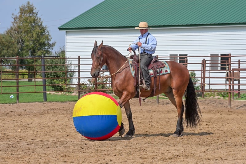 ONLINE-AUKTION Bieten Sie jetzt auf www.PlatinumEquineAuction.com Startgebot: 3.500 $ Auktion endet am 2. November 2025 Benötigen Sie ein neues Sattel? Schauen Sie auf unserer Website oder Facebook bei White Rock Saddles vorbei. Ein Blick auf Donald genügt, um sofort zu erkennen, warum Friesianer als königliche Pferde bekannt sind. Er verkörpert Eleganz gepaart mit Leistungsbereitschaft. Donald ist ein 4-jähriger, beim FBHR registrierter Friesian-Mix-Geländewagen, der 16,2 hh groß ist, eine Schuhgröße 3 trägt und etwa 635 kg wiegt. Er ist ein außergewöhnliches Show-Pferd mit großem Potenzial, in englischen Disziplinen zu glänzen. Donald wurde an Trails, Hindernissen im Dressurviereck und sogar am Trubel des kleinen Stadtlebens gewöhnt. Er ist vollständig desensibilisiert und bereit, seine Ausbildung fortzusetzen. Donald wurde bereits in Dressur ausgebildet und zeigt viel natürliches Talent. Seine beeindruckenden Bewegungen machen auch unerfahrenen Reitern die außergewöhnliche Begabung sichtbar. Er wurde sowohl in englischer als auch in westernspezifischer Ausrüstung geritten und besitzt eine solide Grundlage in beiden Disziplinen. Wir sind überzeugt, dass ihn diese Vielseitigkeit für seinen nächsten Reitpartner besonders attraktiv macht. Er ist ein sehr vorwärts gerichteter Bewegungsablauf, mit einem beeindruckenden Trab im Extended. Wir empfehlen ihn für Reiter mit mittlerem bis fortgeschrittenem Können oder für Reiter, die mit einem Trainer zusammenarbeiten. Auch Anfänger im Erwachsenenalter könnten Donald mit Trainerhilfe reiten. Donald ist von Zebb M, einem reinrassigen Friesianer, gezogen, und stammt von einer Sportpferdestute ab, die zu 50 % Friesianer ist. Damit ist dieser beeindruckende Wallach zu 75 % Friesianer. Ob Sie englische oder westernliche Disziplinen bevorzugen – wir sind überzeugt, dass Donald in Dressur oder Western Dressur hervorragend performen wird. Mit weiterer Ausbildung ist er auch in Springen, Vielseitigkeit oder Reitkunst sehr wettbewerbsfähig. Er meistert den Straßenverkehr problemlos und lässt sich von den üblichen Ablenkungen in kleinen Städten nicht stören. Wasser überquert er ohne Zögern, ebenso wie Baumstämme im Trail oder gefallene Holzstücke. Er wurde sowohl mit Groß- als auch mit Kleintieren sowie Geflügel geritten und hat auch Wildtiere auf Feldern und Trails erlebt. Im Dressurviereck zeigt Donald im Innen- und Außenbereich stets selbstsichere Leistungen. Seine Beweglichkeit ist beeindruckend, er passt sich mühelos verschiedenen Bodenverhältnissen an. Jedes Mal, wenn man auf ihn aufsitzt, ist die gleichbleibende Qualität seines Reitens garantiert – auch nach längerer Pause. Er ist ehrlich, humpelt oder schnappt nicht, selbst wenn er frisch ist. Donald ist gut erzogen und verhält sich vorbildlich, egal ob er auf der Koppel steht oder im Stall. Im Offenstall kommt er gut mit Artgenossen zurecht und ist leicht zu fangen. Er kann an der Box, an der Kreuzgalgen angebunden werden, ist ein vorbildlicher Partner für Hufschmied und Tierarzt, lässt sich problemlos herrichten, ist gut zum Borten und steht ruhig beim Aufsatteln, am Polowrap und beim Aufstieg. Ich stehe gern für ein Gespräch mit Ihnen oder Ihrem Trainer zur Verfügung, um sicherzustellen, dass Donald perfekt zu Ihnen passt. Er wird mit einem aktuellen negativen Coggins-Test sowie einer Pre-Purchase-Untersuchung meines Tierarztes verkauft. Bei Interesse an einem Kennenlernen von Donald oder Fragen vor Ende der Auktion rufen Sie bitte Edwin Raber unter 319-283-0616 an. Standort: Fairbank, Iowa.