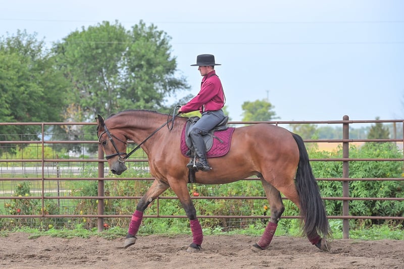 ONLINE AUCTION Place your bids at www.PlatinumEquineAuction.com Starting Bid $3500 Auction ends November 2nd, 2025 Need a new saddle? Check out White Rock Saddles on our website or Facebook One look at Donald is all it takes to confirm every reason why Friesians have been known as royal horses. He is the definition of elegance with the power to perform. Donald is a 4 year old FBHR registered Friesian cross gelding who stands 16.2h, wears a size 3 shoe, and weighs in at approximately 1,400 lbs. He is an outstanding show prospect who has all of the potential in the world to excel in English events. Donald has been exposed to the sights on trails, obstacles in the arena, and even the hustle and bustle of small town life. He is thoroughly desensitized, and is ready to go on in his training. Donald has been started in dressage and already shows so much natural talent. He is such a beautiful mover that even people, who are inexperienced with horses, can see the raw ability that he has. Donald has been ridden extensively in both English and Western tack, and has an excellent foundation in his training in both disciplines. We believe that this makes him so much more well-rounded and versatile for his next riding partner. Donald is a very forward mover, with an impressive extended trot. We feel that he would be best suited for someone who is intermediate to advanced in their showing and riding ability, or someone who is paired with a trainer. Donald could easily be paired with a beginner adult rider, with the aid of a trainer. Donald is sired by Zebb M a purebred Friesian Stallion, and is out of a sporthorse mare who was 50% Friesian, thus making this stunning gelding 75% Friesian. Whether you have a preference for English or Western discipline, we believe that Donald will excel in Dressage or Western Dressage. If kept in training, he could also be very competitive in jumping, eventing, or equitation. Donald handles traffic well, and is not bothered in the least by all of the distractions you typically see when driving through a small town. He crosses water without hesitation, gracefully walks over logs in a trail pattern or over downed timber out on the trail. He has been ridden around large and small livestock as well as poultry, and has also been exposed to wildlife in fields and on trails. When doing arena work, Donald has been ridden in indoor and outdoor arenas, handling both with confidence. He has very impressive agility, and is capable of adapting to different types of footing with ease. You can expect the same ride every time you mount up, as Donald is consistent in his performance even with extended time off. He is honest, you will have no need to worry about hump or buck, even when he is fresh. Donald is well mannered and does wonderful whether he is turned out in the paddock or kept stalled. When turned out, he gets along well with pasture mates and is easy to catch. Donald stands tied, cross ties, is a gentleman for the farrier and veterinarian, clips easily, and stands perfectly to be braided. He stands quietly to be tacked up, for polo wraps, and also stands for the mounting block. I am happy to speak with you or your trainer to ensure that Donald is the perfect fit for you. He will come with a current negative coggins and a Pre-purchase exam from my veterinarian. If you are interested in meeting Donald or have any questions prior to the auction ending, please call Edwin Raber at 319-283-0616. Located in Fairbank, IA. ONLINE AUCTION Place your bids at www.PlatinumEquineAuction.com Starting Bid $3500 Auction ends November 2nd, 2025 Need a new saddle? Check out White Rock Saddles on our website or Facebook