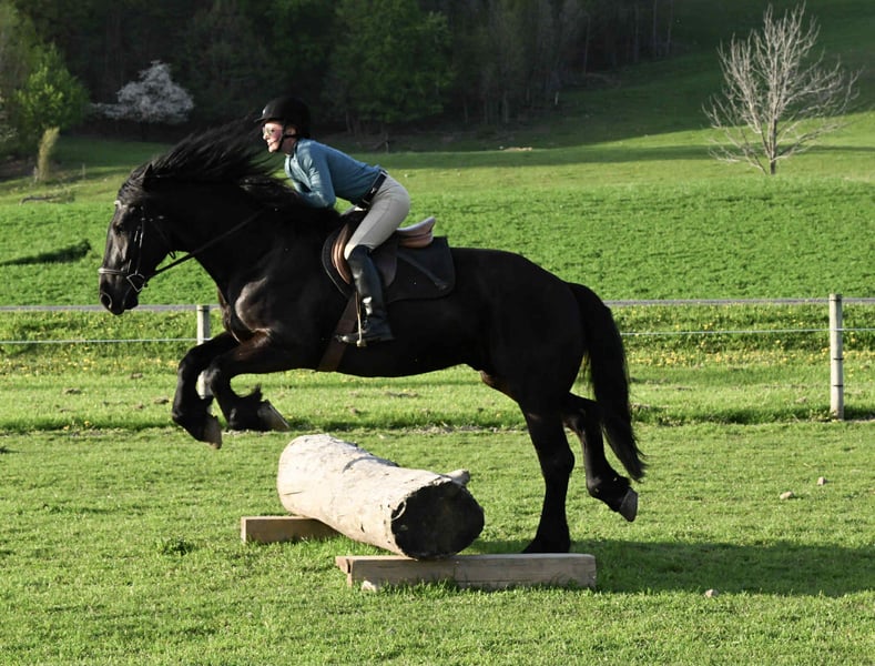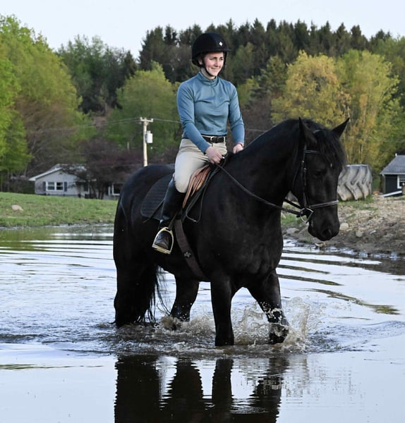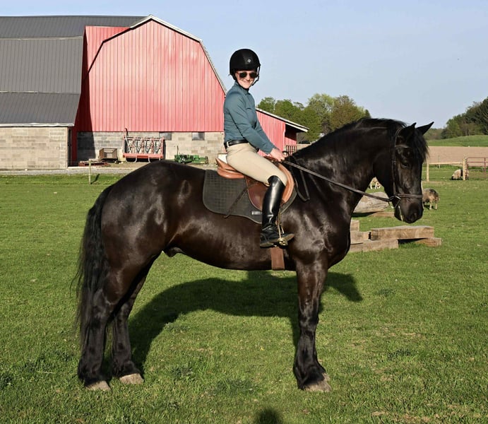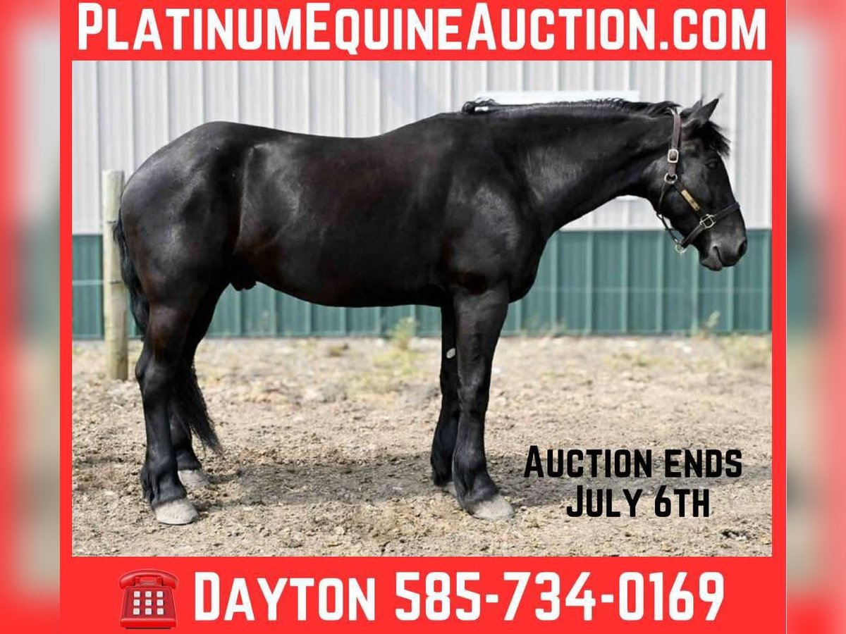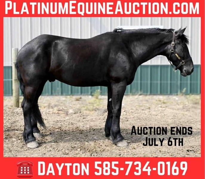 ONLINE AUCTION Place your bids at www.PlatinumEquineAuction.com Starting Bid $3500 Auction ends July 6 2025 Need a new saddle? Check out White Rock Saddles on our website or Facebook! Gunner” is a 4-year-old 16.2 hand registered Friesian SportHorse gelding. He is the first one to meet you at the gate and loves to be right in your pocket. He is a great size to fit many different riders. He is well broke, knows how to use his body, and is gentle in every way. Gunner stands to be mounted, is not phased by tarps, the bullwhip, or any other obstacle we ask him to face. He has even been in parades and never moved a muscle when he seen the lights and heard the sirens. He has been rode English, Western & bareback. He is quiet and enjoyable to ride; complete beginners have ridden him to advanced riders on the trails and in the arena. We have used him multiple times for our special needs lessons and he always goes slow and steady with them. He loves the trails! Water, rocky terrain, steep hills, and bridges, nothing will bother this horse. Gunner will confidently ride down a busy road, unfazed by the surrounding traffic. He knows his leads, and has an excellent whoa. Gunner will also drive he has been hooked in the carriage and on the sleigh he has the perfect personality for our carriage rides. He will stand patiently while being hitched up and when you are getting in and out of the carriage! Gunner is always eager to work and please his owner. He has a puppy dog personality and gets along with mares and geldings in the pasture. He stands for the vet, farrier, or just to be loved on and groomed. He has been hauled off the property many times and is the same on the property as he is off. He sells 100% sound with no vices. PPE is welcome at buyers expense. Contact Dayton Wolcott for more information at 585-734-0169! We are located in Warsaw, NY! ONLINE AUCTION Place your bids at www.PlatinumEquineAuction.com Starting Bid $3500 Auction ends July 6 2025 Need a new saddle? Check out White Rock Saddles on our website or Facebook!