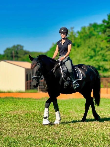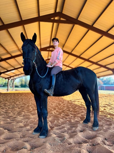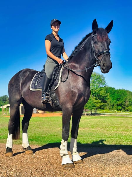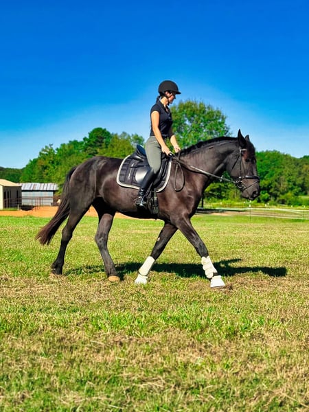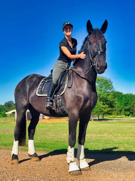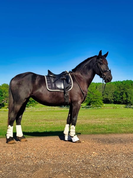 ONLINE-AUKTION Geben Sie Ihre Gebote unter www.PlatinumEquineAuction.com ab. Startgebot $3500 Die Auktion endet am 29. Dezember 2024. Brauchen Sie einen neuen Sattel? Schauen Sie sich White Rock Saddles auf unserer Website oder Facebook an! Dies ist Ihre Chance, ein Pferd zu besitzen, das nicht "nur ein Märchen" ist. Beauty ist eine atemberaubende 2021 Model Registered Friesian Sport Horse Stute mit einem glänzenden schwarzen Fell. Sie kombiniert ein ruhiges, zuverlässiges Temperament mit eleganten, bezaubernden Bewegungen, die ihrem Namen alle Ehre machen. Mit einer Größe von 16,2 Händen und einem kräftigen, gut gebauten Körperbau ist Beauty ebenso schön wie vielseitig. Unter dem Sattel ist Beauty gut gestartet und geht selbstbewusst im Schritt, Trab, Galopp an beiden Leinen und geht mit Leichtigkeit an der Seite. Sie verfügt über einen treibenden Trab und einen bergauf gerichteten Galopp und hat noch nie einen Buckel gemacht oder ein albernes Verhalten gezeigt. Sie ist von Natur aus sanft und reaktionsschnell, lässt sich bereitwillig versammeln und reitet sowohl in den englischen als auch in den westlichen Disziplinen wunderbar. Beauty hat schon viele Kilometer im Gelände hinter sich und meistert Hügel, Wasserdurchquerungen und Verkehr mit Leichtigkeit. Sie reitet selbstbewusst ohne Zaumzeug und ohne Zögern ohne Sattel. Trotz ihres jungen Alters macht es Spaß, sie zu reiten und mit ihr umzugehen. Auch am Boden ist Beauty ein wahrer Schatz. Sie ist sanftmütig, kooperativ und leicht zu striegeln. Sie steht ruhig für den Tierarzt und den Hufschmied und lässt sich ohne Probleme verladen und ziehen. Sie hat hervorragende Barhufhufe, ist gesund und braucht nur wenig Pflege. Alle ihre Impfungen und Wurmkuren sind auf dem neuesten Stand. Beauty's anmutige Bewegungen und ihre Vielseitigkeit machen sie zu einer hervorragenden Kandidatin für Dressur, Westernreiten oder Trailabenteuer. Ihre Schönheit, ihr Temperament und ihr Potenzial machen sie zur perfekten Partnerin für jemanden, der ein talentiertes und verlässliches Pferd aufbauen möchte. Wenn Sie Fragen haben oder Beauty persönlich kennenlernen möchten, zögern Sie bitte nicht, uns zu kontaktieren! Verpassen Sie nicht die Gelegenheit, diese märchenhafte Stute in Ihr Leben zu holen! Sie befindet sich in Texarkana, TX. Kontaktieren Sie Julia Gonzales 430-318-8474 bei Fragen. ONLINE-AUKTION Geben Sie Ihre Gebote unter www.PlatinumEquineAuction.com ab. Startgebot $3500 Die Auktion endet am 29. Dezember 2024. Brauchen Sie einen neuen Sattel? Schauen Sie sich White Rock Saddles auf unserer Website oder Facebook an!