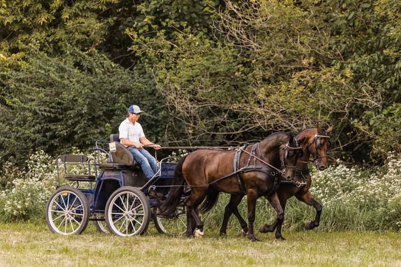 🍁𝒕𝒉𝒆 𝐅𝐀𝐋𝐋 𝑺𝒑𝒆𝒄𝒕𝒂𝒄𝒖𝒍𝒂𝒓🍁 Happening now thru MONDAY | SEPTEMBER 22nd - Available EXCLUSIVELY on HorseBid's website! For more details and to register visit: www.Horsebid.com CONSIGNOR CONTACT: Helmuth Equine 515-460-9191 LOCATION: Ames, IA BREED: Friesian X Standardbred REGISTERED: No COLOR: Bay HEIGHT: 16 (Wilson) & 15.3 (Reno) AGE: 5 GENDER: Gelding Meet Wilson & Reno, a very unique and rare pair of 5 year old Friesian X geldings. They are very well trained to both ride and drive. They can work in any setting whether it’s mowing hay in the field, working in the arena, or pulling the carriage to town on a Sunday afternoon. They do it all with ease. Both ride very well and have been on many trail rides. They go Western, English, and even bareback. Wilson has competed in several dressage shows and scored very well. He has also done show jumping and cross country jumping. Reno is also a very fancy mover and would also make a great dressage horse. They both drive single with confidence and have even been used to hook with young horses to teach them to drive. When paired together, they are like two peas in a pod. If you’re looking for a pair to compete in combined driving, they are super easygoing, uncomplicated in the bridle, and make for a very enjoyable pair. On the trail, both horses will follow or lead and will willingly go anywhere you point them. They get along well in the pasture, are easygoing in and around the barn, stand quietly for the farrier, stand in the wash rack, and are easy to tack and untack. They are both true gentlemen in every way, with excellent work ethics and sensible minds. If you’re looking for a pair of horses that can meet any need you’ve ever dreamed of, Wilson and Reno will fulfill those dreams.