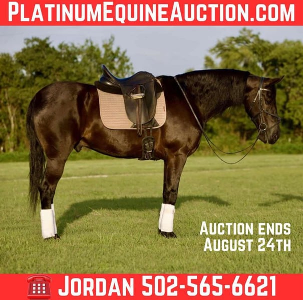 ONLINE AUCTION Place your bids at www.PlatinumEquineAuction.com Starting Bid $3500 Auction ends August 24th, 2025 Need a new saddle? Check out White Rock Saddles on our website or Facebook Toby is an elegant 15.3 coal black 2020 model, regsitered Fresian Sport Horse gelding schooling beautifully in the the dressage ring with tons of potential to carry you through the levels! Rides quietly in the arena or hacking out alone & in a group. Safe and easy for any level rider with simple transitions, changes, and gaits. Lofty and comfortable at the walk, trot, and canter with a soft mouth and moves around easy off leg. Toby rides outside, down the trails, across creeks, ditches, deadfall ect… he will ride around the ranch as well. He is a true gentleman in the stable to catch, groom, handle, saddle, mount, and ride. No silliness or vices of any kind. For more info contact Jordan Brown 502-565-6621 Located in Waco, TX. ONLINE AUCTION Place your bids at www.PlatinumEquineAuction.com Starting Bid $3500 Auction ends August 24th, 2025 Need a new saddle? Check out White Rock Saddles on our website or Facebook