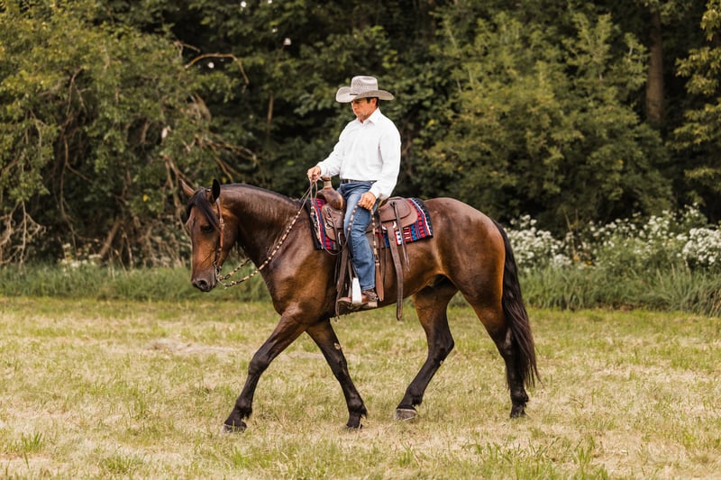 🍁LE SPECTACLE AUTOMNAL🍁 Se déroule dès maintenant jusqu’à LUNDI 22 SEPTEMBRE | Disponible EXCLUSIVEMENT sur le site d’HorseBid ! Pour plus de détails et vous inscrire, rendez-vous sur : www.Horsebid.com CONTACT DU CONSIGNATEUR : Helmuth Equine 515-460-9191 LIEU : Ames, Iowa RACE : Croisement Frison x Quarter Horse INSCRIT : Non NOM ENREGISTRÉ : Milo COULEUR : Bai TAILLE : Plus de 16 mains ÂGE : 5 ans SEXE : Hongre Découvrez Milo, un hongre croisé Frison et Quarter Horse, magnifique, âgé de 5 ans, mesurant plus de 16 mains. Milo est entraîné aussi bien à la selle qu’au travail en attelage, et il est prêt à répondre à toutes vos demandes. Il marche, trotte et galoppe avec élégance, passant aisément d’un pied à l’autre. Si vous recherchez un grand cheval de trait avec un trot authentique de Quarter Horse, vous avez trouvé votre partenaire. Il peut faire des cercles au trot allongé, se monte agréablement en selle anglaise, et est prêt pour la compétition de dressage. Milo répond très bien aux aides de jambes et possède un tempérament calme, sensible et volontaire. Il se déplace en solo ou en groupe, en confiance, en passant l’eau, en montant et descendant des pentes, et en suivant n’importe quel sentier avec plaisir. Il excellerait également en dressage western ou en concours de ranch horse. Son attitude est celle d’un cheval qui reste à l’écoute et prêt à faire ce qu’on lui demande. Grâce à sa grande éthique de travail, il peut faire une sortie en randonnée un jour et participer à un test de dressage le lendemain. Milo s’entend bien avec les autres chevaux, est facile à attraper, et peut vivre en box ou en pâture. Il ne nécessite aucun entretien particulier. Il est aussi beau que performant, avec une silhouette remarquable. Si vous cherchez un partenaire solide, polyvalent, capable de pratiquer toutes disciplines avec plaisir, Milo est le cheval qu’il vous faut.