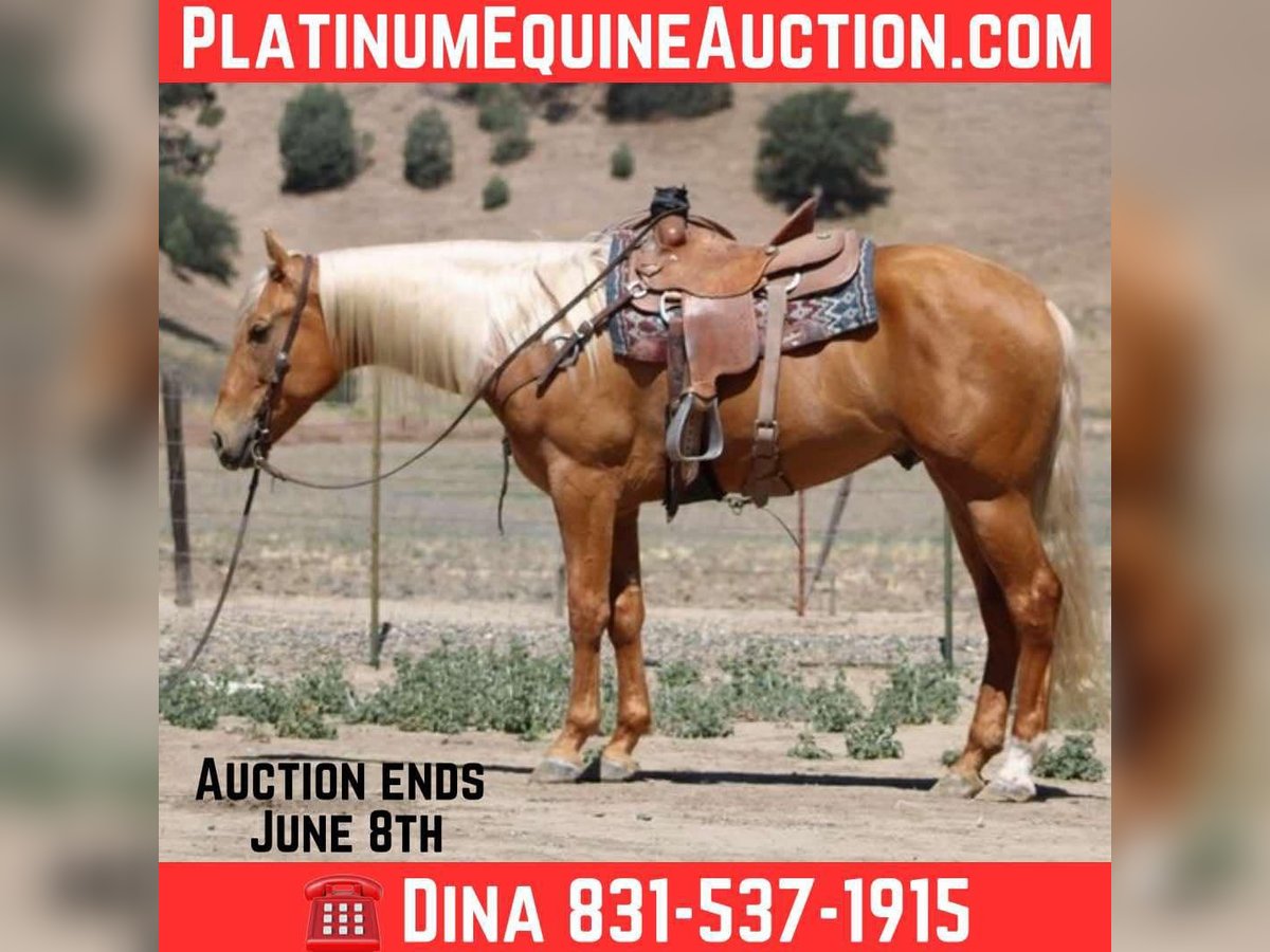 ONLINE AUCTION Place your bids at www.PlatinumEquineAuction.com Starting Bid $3500 Auction ends June 8th, 2025 Need a new saddle? Check out White Rock Saddles on our website or Facebook! Meet 24-Carrot This golden palomino is a real head-turner, capturing everyone’s attention with his radiant beauty. Picture this: a magnificent horse with a long, flowing mane and tail that shimmer in the sunlight. Standing at 16 hands tall, he’s like a living, breathing work of art. And despite being just 5 years old, he carries himself with the calm and gentle spirit you’d expect from a much older horse. He’s got this adorable puppy-dog personality that just melts your heart. I swear, if he could, he’d be right there snuggling with you on the couch! Riding 24-Carrot is an absolute dream. He transitions between walk, trot, and canter so smoothly and gracefully. He’s got a lovely headset, responds beautifully to leg cues, and stops and backs with ease. You can tell he’s been trained for a variety of disciplines. But don’t let his good looks fool you – he’s incredibly versatile too! Whether he’s navigating tough trails or tackling obstacle courses, he approaches everything with the confidence of a seasoned pro. What really gets me about 24-Carrot are his kind, intelligent eyes. They say a lot about his personality. He stays calm even around busy roads, making him super safe for riders of all levels. He’s experienced on trails, confidently handles water, logs, trees, and wildlife. He doesn’t mind riding alone or with other horses. He’s been used to gather cattle and remains composed in any situation. Plus, he’s a champ on obstacle courses, unfazed by bridges, flags, bouncy balls, and tarps. This great boy is always happy to see you, stands patiently for everything from saddling to bath time, and travels well. If you’re interested in meeting 24-Carrot, reach out to Dina at Longhorn Ranch at 831-537-1915. located in Paicines, CA, and can arrange shipping throughout the US. ONLINE AUCTION Place your bids at www.PlatinumEquineAuction.com Starting Bid $3500 Auction ends June 8th, 2025 Need a new saddle? Check out White Rock Saddles on our website or Facebook!