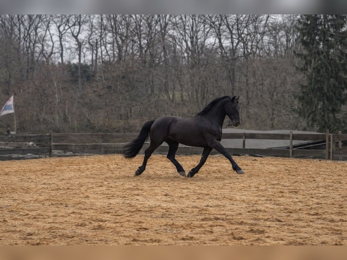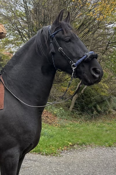 Vanwege privéomstandigheden geven wij onze zeer geliefde Friese door. Hij wordt alleen afgestaan aan de allerbeste mensen. Hij is 6 jaar oud, ongeveer 1,64 m schofthoogte, beschikt over volledige papieren met afstammingsbewijs en is een absolute schat. Hij heeft een meer sportieve, slanke bouw. Momenteel wordt hij bij ons recreatief in het terrein gereden. Onder andere ook bitloos en met een zadeldepel. Hij is heel helder van geest en wil zijn mens altijd tevredenstellen. Nieuwe dingen ontmoet hij soms kort sceptisch of wat argwanend, maar hij blijft altijd aanspreekbaar en raakt nooit over zijn toeren. Vanwege zijn leeftijd is hij nog niet geschikt voor kinderen. Alledaagse prikkels uit de omgeving zoals wegverkeer, auto's, tractoren, blaffende honden, kleine bruggen en tunnels kent hij uitstekend en blijft hij heel ontspannen. Zelfs een lopende cirkelzaag naast hem brengt hem niet uit balans. Hij schrik niet eens als je twee meter naast hem de kettingzaag aanzet. Ook tijdens Oud en Nieuw kijkt hij heel ontspannen naar het vuurwerk. Grote vrachtwagens vindt hij echter nog steeds spannend. Hij houdt ervan om in het water te gaan. Hij is een nieuwsgierige charmeur, zeer mensgericht en wil zijn mens altijd behagen. Rassetypisch brengt hij wat temperament en gevoeligheid mee, maar dat blijft bij hem meestal binnen de grenzen. Hij is leergierig en attent, maar heeft een rustige begeleiding nodig en geen harde of veeleisende rijstijl. Met zijn kleine streken zorgt hij voor een glimlach (de poetskist uitruimen, de hooivork "clausen", de kruiwagen omverwerpen). Gezondheid: - Kerngezond - Loopt probleemloos op hoefijzers of barhuf - Geen hoefstraalontsteking - Geen mudziekte - Geen eczeem - Tanden recent verzorgd (oktober) - Geïmmuniseerd en na de weideperiode ontwormd - Bij de hoefsmid zeer braaf Hij is een ongeschonden paard met potentieel. Nu zoekt hij zijn mens, die hem verder opleidt, stimuleert en samen met hem zijn weg bewandelt. Bij vragen, neem gerust contact op ☺️ Hartelijke groeten