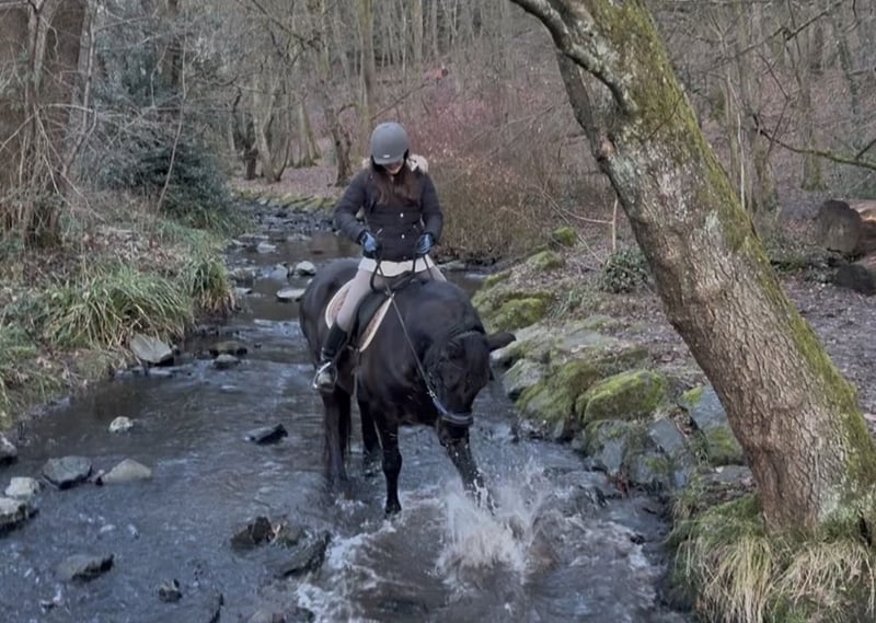 Aus privaten Gründen geben wir unseren sehr lieben Friesen ab. Er wird nur in aller Beste Hände abgegeben. Er ist 6 Jahre alt, ca. 164 cm Stockmaß, besitzt volle Papiere mit Abstammungsnachweis und ist ein absoluter Schatz. Er ist eher der sportliche schlanke Friese. Er wird bei uns zurzeit freizeitlich im Gelände geritten. Unter anderem auch Gebisslos und mit Reitpad. Er ist total klar im Kopf und möchte dem Menschen immer gefallen. Neuen Dingen begegnet er manchmal kurz skeptisch oder etwas guckig, bleibt dabei aber immer ansprechbar und steigert sich nie in irgendwas rein. Aufgrund seines Alters ist er noch nichts für Kinder. Alltägliche Umweltreize wie Straßenverkehr, Autos, Traktoren, Hundegebell, kleine Brücken und Tunnel kennt er bestens und ist dabei total entspannt. Selbst eine laufende Kreissäge direkt neben ihm bringen ihn nicht aus der Ruhe. Er zuckt noch nicht mal, wenn man 2 Meter neben ihm die Kettensäge anschmeißt. Auch an Silvester schaut er sich total entspannt das Feuerwerk an. Vor sehr großen LKWs hat er jedoch noch Respekt. Er liebt es ins Wasser zu gehen. Er ist ein neugieriger Charmeur, sehr menschenbezogen und möchte seinem Menschen immer gefallen. Rassetypisch bringt er etwas Temperament und Sensibilität mit. Was sich bei ihm aber sehr in Grenzen hält. Er ist lernwillig und aufmerksam, benötigt jedoch eine ruhige Führung und keine harte oder fordernde Reitweise. Für ein Schmunzeln sorgt er mit seinem kleinen Schabernack (Putzkasten ausräumen, Mistgabel „klauen“, Schubkarre umwerfen). Gesundheitszustand: • Kerngesund • läuft problemlos Barhuf • keine Strahlfäule • keine Mauke • kein Ekzem • Zähne frisch gemacht (Oktober) • geimpft und nach der Weidesaison entwurmt • beim Schmied super brav Er ist ein unverbrauchtes Pferd mit Potenzial. Jetzt sucht er seinen Menschen, der ihn weiter ausbildet, fördert und gemeinsam mit ihm seinen Weg geht. Bei Fragen meldet euch gerne ☺️ Liebe Grüße