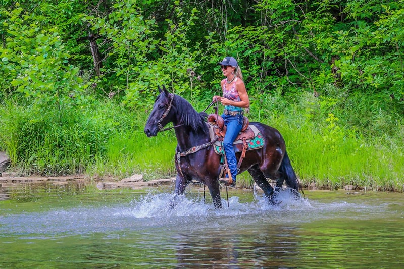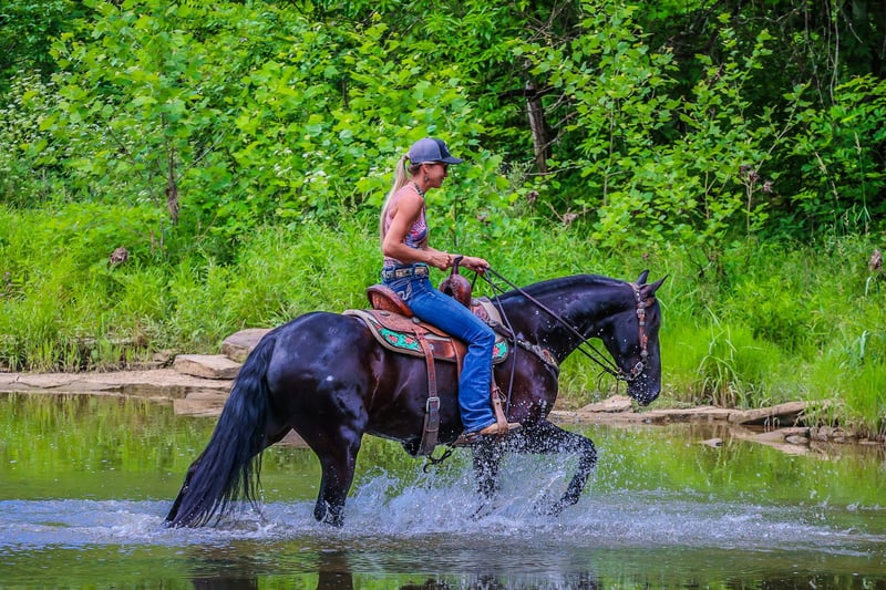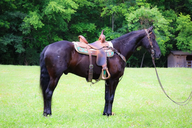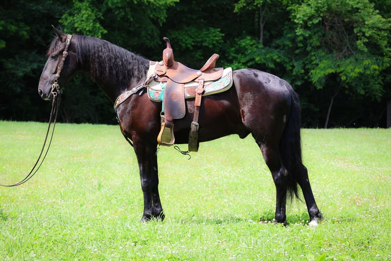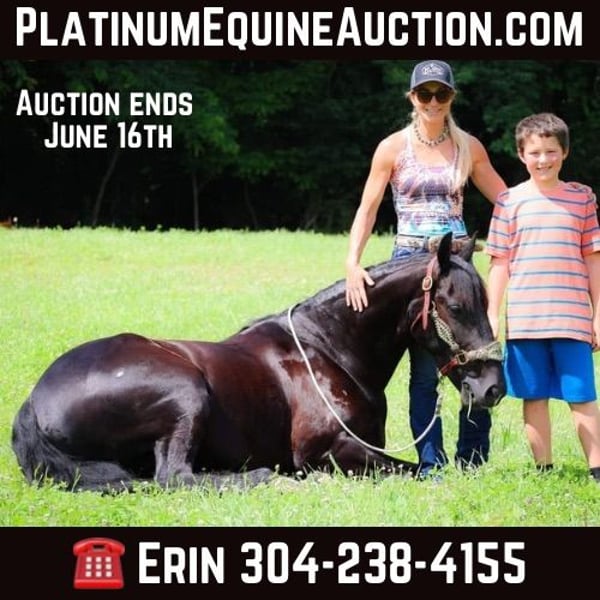 ONLINE AUCTION Place your bids at www.PlatinumEquineAuction.com Starting Bid $3500 Auction ends June 16th, 2024 Need a new saddle? Check out White Rock Saddles on our website or Facebook! This is AMOS, a super suave BLACK FRIESIAN MORGAN CROSSBRED GELDING that is broke to ride and drive. He is the perfect size and build at 15 hands tall. He has had some professional training and will sit down, turn around, and move off of leg cues. He has a nice lope, will catch his leads, and stops hard on whoa. He will trail ride anywhere you want to go and has been driven on the main roads to town. He is traffic safe, easy to harness, hitch, tack, mount, and groom. This nice gelding is just 5 years old and has lots of outside miles and real life experience. He has been ridden under English and Western tack and is fancy enough to take to the show pen. Located in Flemingsburg, KY. Contat HH Horses Erin 304-238-4155 with any questions. ONLINE AUCTION Place your bids at www.PlatinumEquineAuction.com Starting Bid $3500 Auction ends June 16th, 2024 Need a new saddle? Check out White Rock Saddles on our website or Facebook!