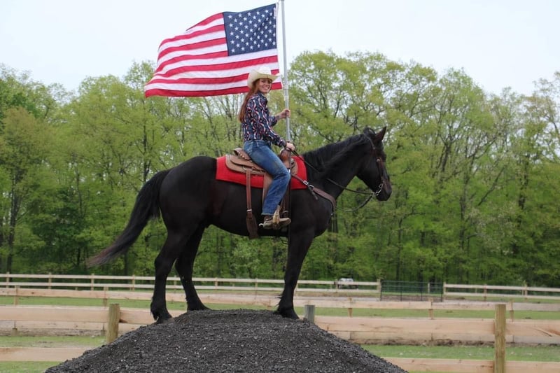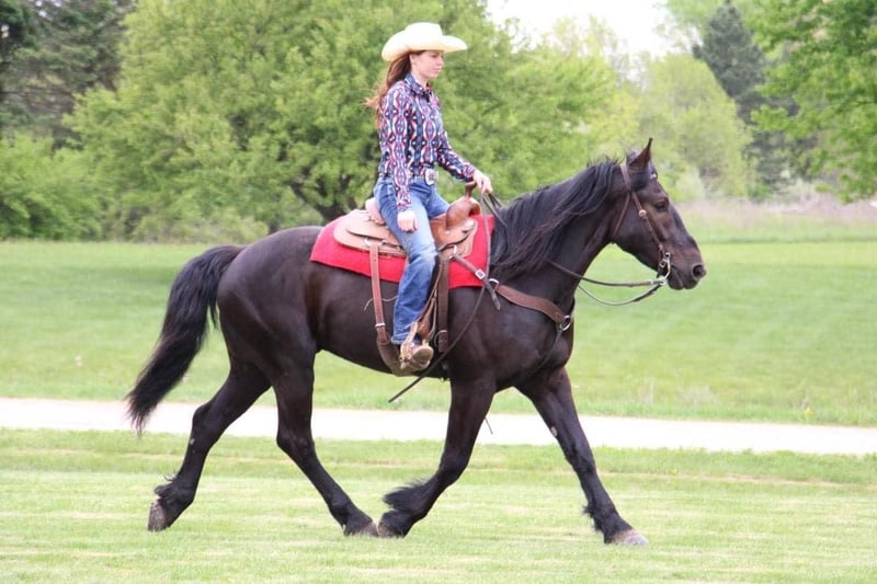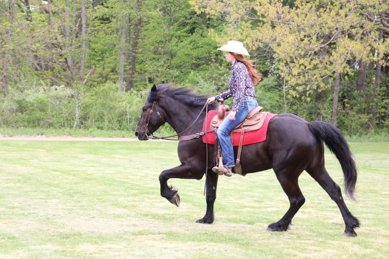 ONLINE AUCTION Place your bids at www.PlatinumEquineAuction.com Starting Bid $3500 Auction ends July 21st, 2024 Need a new saddle? Check out White Rock Saddles on our website or Facebook! I would like to introduce Prince!!! Prince is a 5 year old, 16.1hh, jet black lightly feathered stocky made Percheron Friesian cross gelding with a sweet little snip on his nose! This boy is broke to walk, trot, and canter but if you let him pick the pace it will stay slow and steady. His trot is one of the most elegant you will find and his canter is like sitting on a cloud. He’s soft in the mouth and has excellent breaks. Prince has had years of natural horsemanship training. He will walk, trot, and canter with no tack! He stays right in tune with his rider. He knows all the cool tricks, like how to sit and lay down on command. He has completed our desensitizing program with flying colors. He has competed in trail versatility classes under grandstand lights and handles the crowd and chaotic atmosphere like an old pro. We have been unable to actually spook him in any way. He trail rides in deep woods, open country, deep water, and steep terrain. He will not shy from traffic, kayaks, or bikes! Show him and let his grand kids show him in 4/H events. Prince is a love of a horse. Yes he loves people and other horses. He’s an easy keeper and easy going guy. Prince can happily live in a back yard or a busy barn he’s got that chill go with the flow attitude! He would make an excellent horse to enjoy the trails on or to teach new or inexperienced riders. He is one of the most popular crosses in the horse world and he comes with loads of experience. He plays well with all others outside and will greet you at the gait! He has no vices. Don’t let him slip through your fingers! Prince is a horse the entire family can enjoy! Please call or text Ellesse Schwartz at 248-390-6831 for more information. Birdie lives in Howell, MI 48855. ONLINE AUCTION Place your bids at www.PlatinumEquineAuction.com Starting Bid $3500 Auction ends July 21st, 2024 Need a new saddle? Check out White Rock Saddles on our website or Facebook!