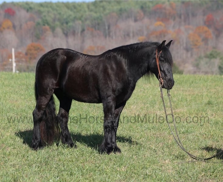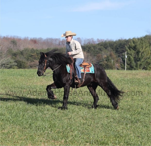 Go to visit our website for more pics and a video. AHAMC has been in the horse business and sold horses over the internet since 2005. We have a long track record of success with hundreds of happy customers. We work hard to match riders with the correct horses and specialize in beginner safe, family friendly horses that have been used and checked out by our family! Max is a 15hh, 6 yr old, JET Black registered Gypsy Horse. He is a half Gypsy Vanner and a half Friesian… you get he best of both worlds with this guy, the looks, beautiful black coloring, lots of mane and tail with some feathering… Max is a well built gelding with lots of muscle! He has been ridden on a small cattle operation and although he hasn’t been a big time hardworking ranch horse he has toted the kids around the operation! Max has been camping and trail ridden in several states across the west and east as well. He will cross creeks, ditches, logs and navigate rough rocky areas. He is safe in traffic whether that be trucks or cars. He is safe for any beginner to ride and is sure to help build your confience levels. He will go up or down even the steepest slopes, across deep creeks, over downed trees, and over all types of rough terrain while still being sure footed. Max is not cinchy, cold backed, does not crib or weave. He has the looks, the right mind set and the expierience… Max is the horse of a lifetime! Feel free to call Eric 606-308-2461 any questions.