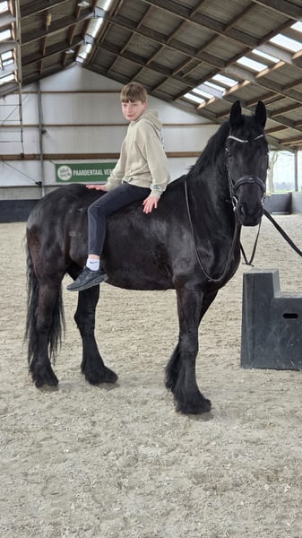 🖤 Friesian Gelding Aarnold 471 – 7 years old – well-behaved family horse with a gentle character For sale: beautiful 7-year-old Friesian gelding Lineage: Aarnold 471 Height: approximately 1.60 m (16.1 hh) With a heavy heart, I am offering him for sale due to my own health issues. ✨ Character & Handling Very sweet and people-oriented family horse Gentle and reliable in daily handling Quiet at the blacksmith, dentist, and when loading onto the trailer 🏇 Riding & Level In the arena: calm and pleasant to ride Easy to mount and ride forward Had a period of rest due to my health, but now ready to continue training Can be a bit fresh outside Not traffic-proof (mostly ridden in the arena) 🩺 Health Mild summer eczema, well-controlled with a rug Overall a honest horse 🎁 Included (optional – added value) Preferably I sell him complete: Custom-made Fryso Comfort AE dressage saddle (17.5 inch) → Fits well and ready to ride immediately Other equipment available upon request 💰 Price Horse: €8,950 Complete (including saddle/equipment): €9,750 📍 Viewing by appointment ✔ Inspection allowed (at own expense) Only sold if there is a good connection and a suitable 5-star home.