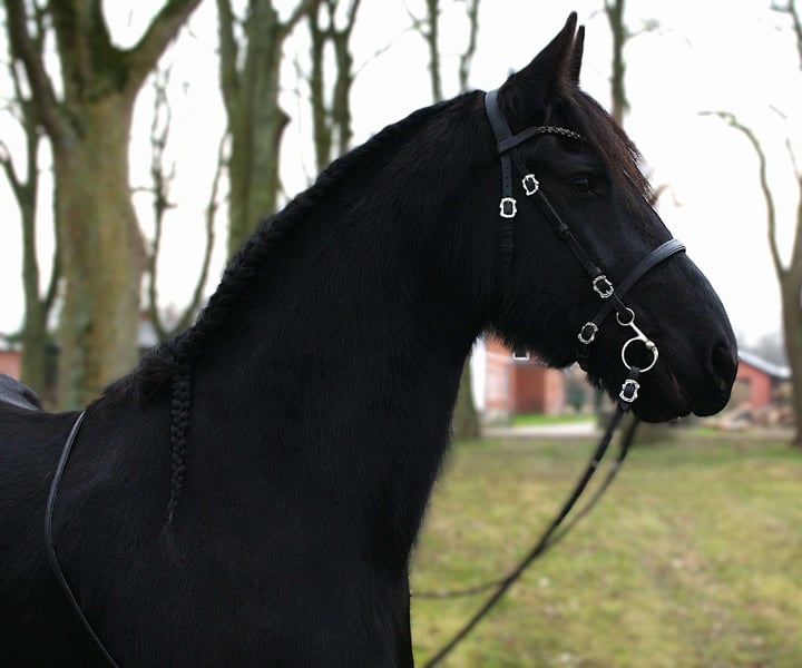 Aus privaten Gründen steht zum Verkauf Annelie Shela K, eine 10 Jahre alte typvolle Friesenstute mit Traummähne und gutem Fleiß, dabei aber sehr fein und immer gut zu händeln. Absolut menschenbezogen, extrovertiert und verschmust. Sie kommt auf Abruf aus der Herde und möchte mit ihrem Menschen arbeiten. Aktuelles Stockmaß 167cm, 660kg. Geboren 2016. Pier 448 x Mintse 384. KFPS Papiere vorhanden. Sie hatte als Fohlen eine hervorragende erste Prämie und hat eine Top Abstammung, wurde aber nicht weiter von mir vorgestellt und hatte auch noch kein Fohlen. Annelie ist seit sie 2 1/2 Jahre alt war in meinem Besitz und ich habe sie selbst nach klassischen-barocken Grundsätzen ausgebildet. Dabei wurde sie mit viel Geduld, sehr langsam und schonend eingeritten. Sie ist geritten in allen Grundgarten und Seitengängen im Schritt, Schulterherrein und Renvers im Trab. Spanischer Schritt wurde gerade unter dem Sattel begonnen. Dabei ist sie sehr fein im Maul, rollt sich nicht ein, und hört sehr schön auf Sitz und Bein. Sie geht alleine und in der Gruppe ins Gelände, ist dort aufmerksam, aber gut zu kontrollieren. Vom Boden aus ist sie sehr vielfältig ausgebildet: Longe, Doppellonge, "Fahren vom Boden", Dualaktivierung, Stangenarbeit, klassische Handarbeit, Zirzensik, Freiarbeit, Freispringen, etc. Sie kennt Boxenhaltung mit Gruppenpaddock und Offenstallhaltung, ist dabei sehr verträglich und rangniedrig in der Herde. Sie ist verladefromm und ging bisher immer problemlos barhuf. Bei der Hufbearbeitung steht sie brav. Röntgenbilder liegen nicht vor, aber laut Osteopathin sind die Gelenke und der Rücken klar. Zähne wurden regelmäßig gemacht, sowie Entwurmt und auch die Impfungen sind selbstverständlich aktuell und komplett. Rassetypisch hat sie immer mal wieder Probleme mit Mauke/Raspe, das lässt sich aber mit den üblichen Mitteln immer gut in den Griff bekommen. Sonst hat sie keine bekannten gesundheitlichen Einschränkungen. Da sie gerne auch mal etwas über motiviert sein kann, wünsche ich mir einen ruhigen bestimmten Menschen der weiß ihre Energie in die richtige Richtung zu leiten. Wer einen wunderschönen, motivierten Allrounder sucht für anspruchsvolle Freizeitreiter wird mit Annelie sehr glücklich werden. Gerne kann auch ihre gesamte Ausrüstung mit erworben werden. Platz vor Preis.