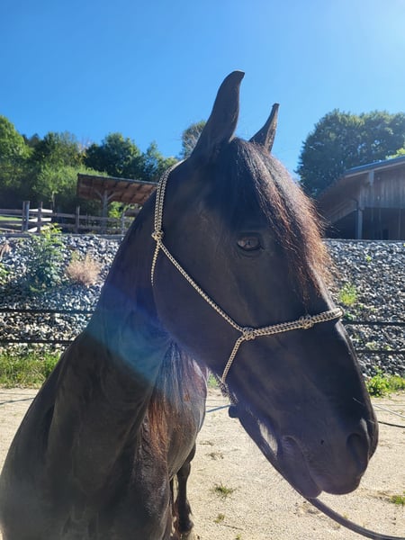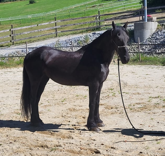 For sale is a beautiful and expressive Friesian mare with a great character. Name: Nada v. Pilzhof Date of Birth: 27.03.2012 Height: approx. 153-155 cm Training Level: Leisure horse, ridden, groundwork Health: regularly vaccinated, dewormed, shoe-friendly Nada is well-behaved in handling with both adults and children. She is currently kept in a paddock with mares and a gelding. We are looking for a nice "forever home" for her, where she will be adequately occupied. Home before price. Only serious inquiries are welcome, and I look forward to a message or a call. Trial rides are possible and also desired by arrangement.
