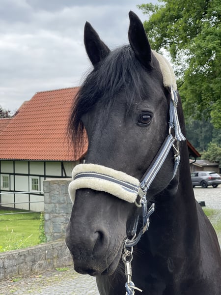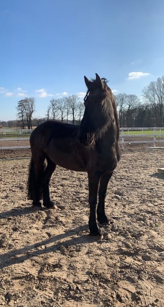 Neske vom Coenenhof ist eine 13-jährige Friesenstute, geboren am 29. Mai 2012, und 1,64 m groß. Sie ist seit 2020 in liebevoller Obhut und ein echtes Herzstück. Neske ist im Umgang absolut brav, lässt sich problemlos verladen und achtet besonders auf Kinder. Sie versteht sich gut mit anderen Pferden, ist aber eher ranghoch und übernimmt gerne die Führung. Leider ist sie nicht reitbar, da sie an Kissing Spines und Headshaking leidet und zudem ein starkes Sommerekzem hat. Für sie wäre ein Platz an einem Ort mit weniger Fliegen und Mücken ideal, zum Beispiel in der Nähe der Ost- oder Nordsee. Sie ist eingefahren und könnte nach etwas Training wieder auch für eine Kutsche genutzt werden. Wenn du ein liebevolles, ruhiges Zuhause für Neske hast, melde dich gerne!