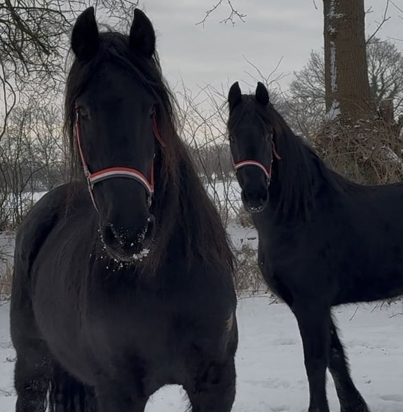 Zwei Friesen Stuten leider aus gesundheitlichen Gründen in gute Hände abzugeben. Beide 15 jährig und ca 1.60 cm. Geritten und gefahren. Beide haben einen Pass ohne Abstammung, hatten beide im letzten Jahr je ein Fohlen bei Fuß und müssten daher wieder angeschoben. Am liebsten wieder in Offenstallhaltung. Brav und menschenbezogen im Umgang. Bevorzugt zusammen abzugeben. Brav und Menschenbezogen im Umgang. Bei ernsthaften Interesse können gerne Videos geschickt werden. Nur in gute Hände. 4800€ pro Stute.