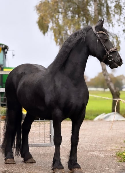 Schöne, kräftige Friesenstute. Sie war in der Vergangenheit Fohlenmutter und wurde bereits geritten, aber derzeit nicht.