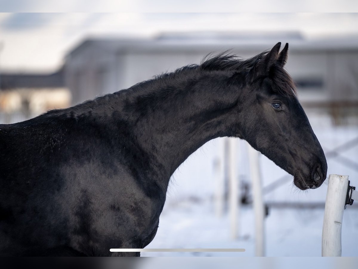 Cavalla frisona di 9 mesi in vendita. Elger 536 x Norbert 444. La madre è una mezza sorella del stallone stb Aarnold 471. Sana, abituata al paddock, coraggiosa, conosce tutte le basi come legare, dare le zampe e condurre al guinzaglio. Una cavalla di famiglia coraggiosa, ideale per l’allevamento.