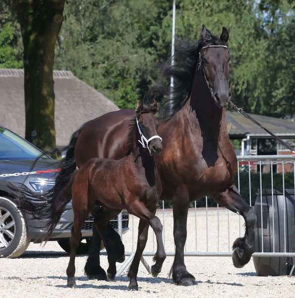 Na sprzedaż, Bardzo piękna klaczka fryzyjska. Benthe urodziła się w lipcu 2024 roku. Obecnie przebywa w hodowli i radzi sobie tam dobrze. Benthe przeszła próbę dziedziczności i otrzymała trzecią premię, ponieważ ze względu na późny termin urodzenia uważano ją za zbyt małą. Jednak dostrzegli w niej potencjał.