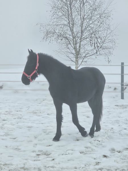 Verkaufe im Auftrag: Hübsche, brave, sehr menschenbezogene 2-jährige Friesenstute. Sie ist brav im Umgang und beim Hufschmied. Wurde als Handpferd mitgenommen. Stockmaß zur Zeit ca. 1,50 m. Holländische Papiere. Standort 4320 Perg.