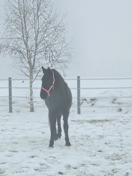 Vendo una bella e tranquilla puledra frisona di 2 anni.