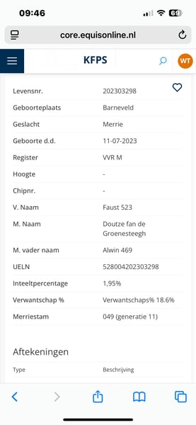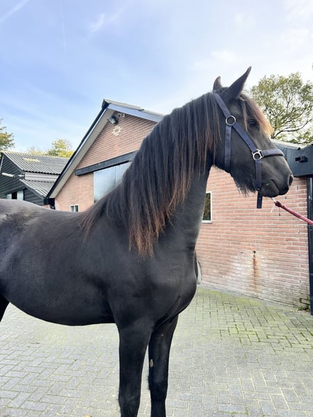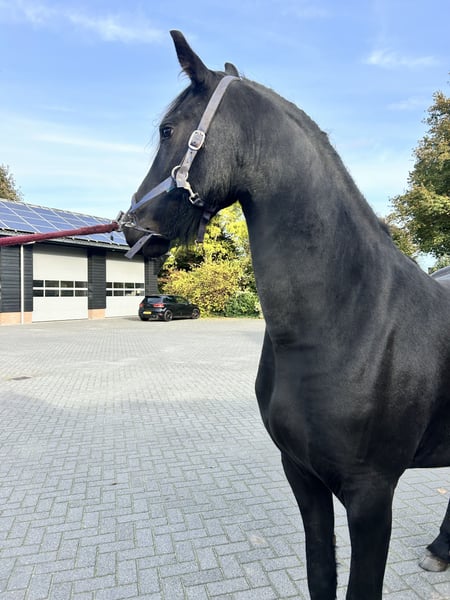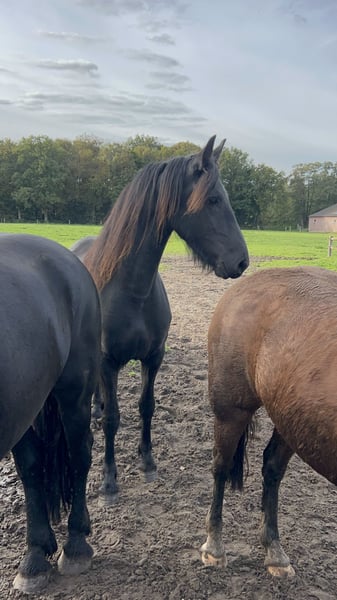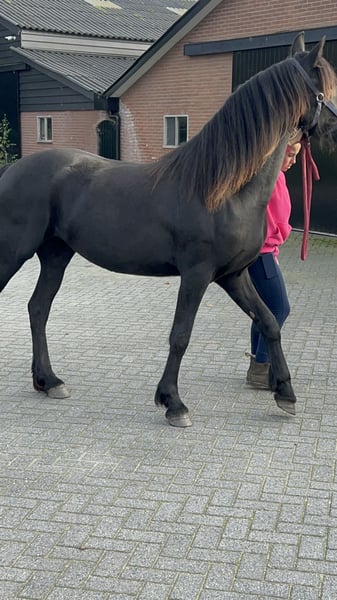 Uit goede foklijn. Afstamming faust x alwin x beart. Lieve mensgerichte merrie. Elegant en hoogbenig. Gitzwart. Nu al flinke hoogte dus wordt minimaal 170 cm. Inteelt 1,95 Verwantschap 18,6 Merriestam 049.