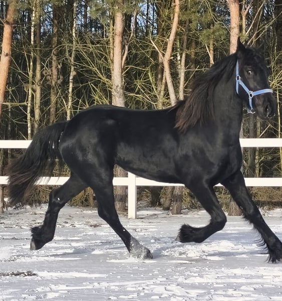 Witam, mam do sprzedania Piękną 1,5 roczną klacz Fryzyjską. Posiada paszport i rodowodu Holenderski ,,Główna Księga Stadna KFPS" To elegancka klacz fryzyjska o kruczoczarnej, lśniącej sierści i przyjaznym usposobieniu, oprócz pięknego wyglądu ma też przepiękny ruch w trzech chodach. Który wyróżnia ją na tle innych koni. To dobrze zapowiadającą się klacz która ma duże szanse zostać STER! Klacz jest nauczona prowadzania na uwiązie, podawania nóg i zabiegów pielęgnacyjnych. Zainteresowanym mogę wysłać filmy na Whatsapp. Zapraszam do kontaktu po więcej informacji po nr. tel. +48 691 277 640