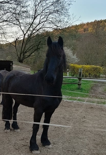 Traum in Schwarz: Elegante 4-jährige Friesenstute mit viel Potenzial Zum Verkauf steht diese bildschöne, 4-jährige Friesenstute, die nicht nur durch ihre klassische Optik, sondern auch durch ihren ehrlichen Charakter überzeugt. Eckdaten: Rasse: Friese Alter: 4 Jahre (Geboren: 30.03.2022) Geschlecht: Stute Stockmaß: ca. 160 cm Abstammung: Karon vom Goldfeld x Puschkin Papiere: sie ist eingetragen im FPZV, als Fohlen prämiert mit 1. Prämie Beschreibung: Diese junge Dame besticht durch ihr schwarzes Fell und die typisch schwungvollen Gänge. Sie zeigt sich im täglichen Umgang sehr menschenbezogen, neugierig, brav beim Putzen und schmiedefromm. Ausbildungsstand: Ihrem Alter entsprechend ist sie noch nicht geritten. Kennt Halfter und Bodenarbeit. Sie lernt extrem schnell, ist stets motiviert und möchte gefallen. Aufgrund ihres ausgeglichenen Temperaments ist sie ein ideales Nachwuchspferd. Regelmäßig entwurmt und geimpft und die Zähne kontrolliert. Sie ist bei uns im Offenstall im Herdenverband aufgewachsen. Wir suchen für sie ein 5-Sterne-Zuhause, in dem sie weiter gefördert wird. Preis: 12.900,00 € Bei ernsthaftem Interesse freue ich mich über eine Nachricht, um einen Termin zum Kennenlernen zu vereinbaren.