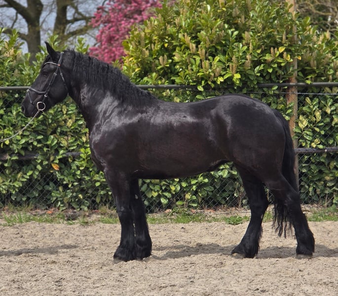 Te koop aangeboden: prachtige barok type Friese merrie 2021) Deze imposante Friese verschijning is een echte eyecatcher met Haar barokke bouw, lange manen en chique uitstraling. Met een stokmaat van ca. 167 cm is ze ideaal van formaat voor zowel recreatief als sportief gebruik. Ze is braaf en betrouwbaar in de omgang en beschikt over een fijn, werkwillig karakter. Onder het zadel laat ze zich netjes rijden en is ze fijn te bewerken, zowel in de bak als buiten. Ook in het verkeer toont ze zich nuchter en zeker. Daarnaast is ze goed braaf voor de koets en toont ze zich daar rustig, stabiel en meewerkend. Hierdoor is ze uitermate geschikt voor zowel mennen als rijden. Kortom: een veelzijdige Friese paard met uitstraling, karakter en kwaliteit, geschikt voor een ambitieuze amateur of een liefhebber van het Friese ras. Voor meer informatie of een proefrit bent u van harte welkom om contact op te nemen.