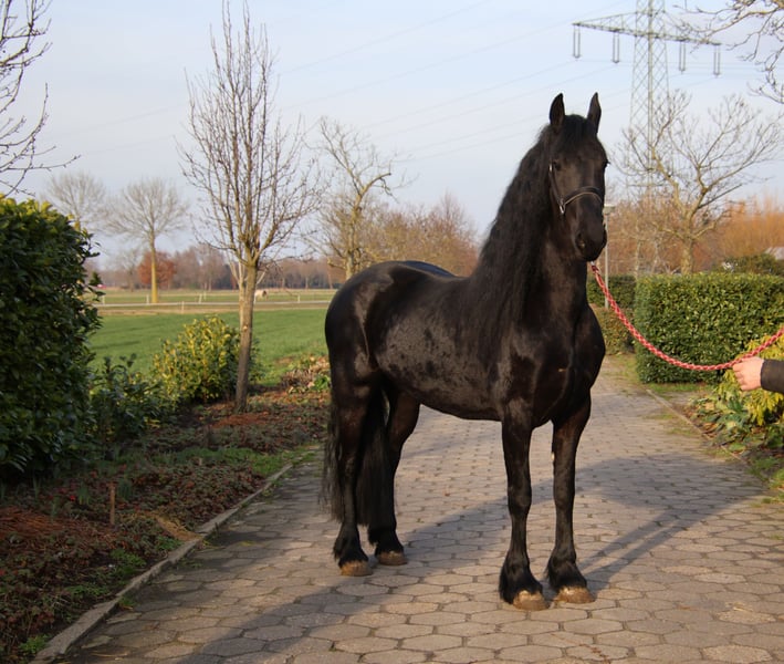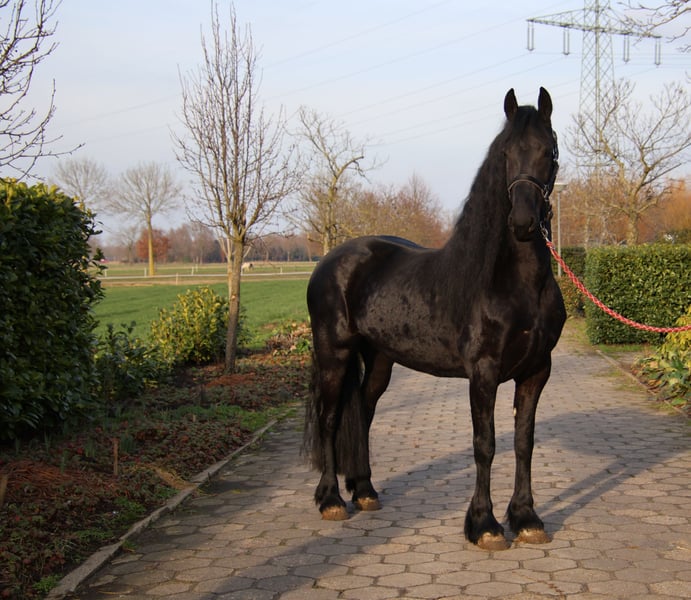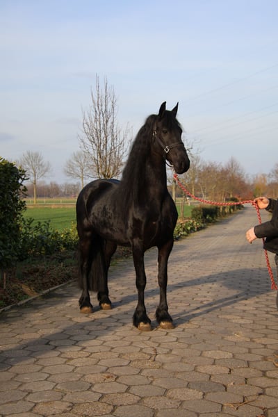 Una yegua Frisona excepcional de la línea 50, una combinación de elegancia, fuerza y calidad. Esta hermosa yegua cuenta con papeles completos y ha sido premiada con una tercera clasificación. Con una altura impresionante de 1,67 m, tiene una estatura ideal y una estructura fuerte y correcta. Su melena excepcionalmente larga y abundante — rara vez vista — la convierte en un verdadero imán para las miradas. Es una presencia imponente y elegante, con mucha presencia y un perfil noble. Además, está bien entrenada, tanto para tiro como para monta. Trabaja con facilidad, es obediente y confiable en su comportamiento. Esta yegua es muy adecuada para jinetes que deseen usarla de forma recreativa, pero también ofrece interesantes posibilidades para el futuro en la cría. Gracias a su linaje, estatura y presencia, puede ser una adición valiosa en la reproducción de potros de calidad. No es solo un caballo, sino un sueño con futuro. Para quienes buscan un Frisón excepcional, con calidad y potencial… ella puede ser el caballo de sus sueños. 🖤