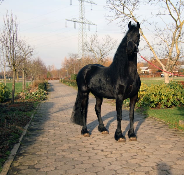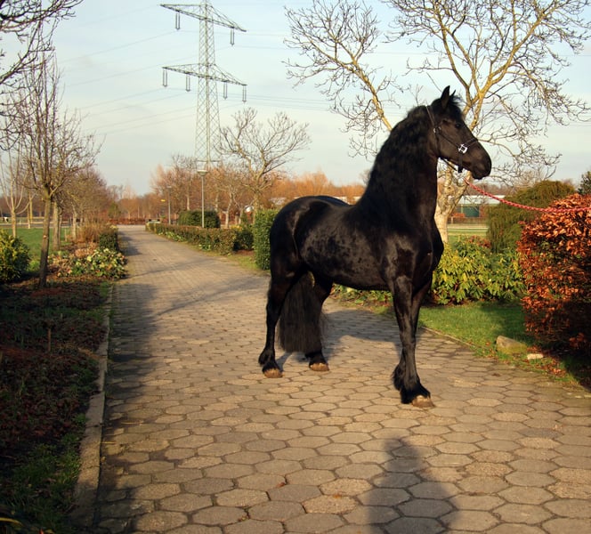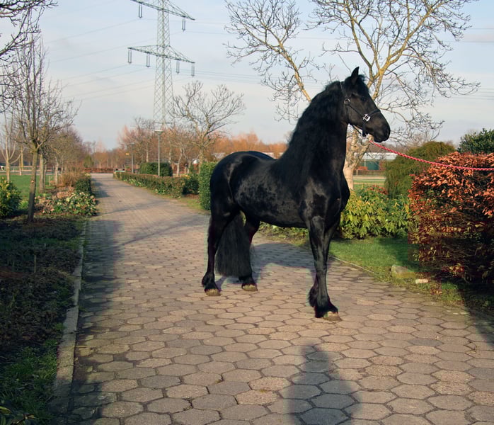 Cavalla Frisiana eccezionale con criniera straordinariamente lunga