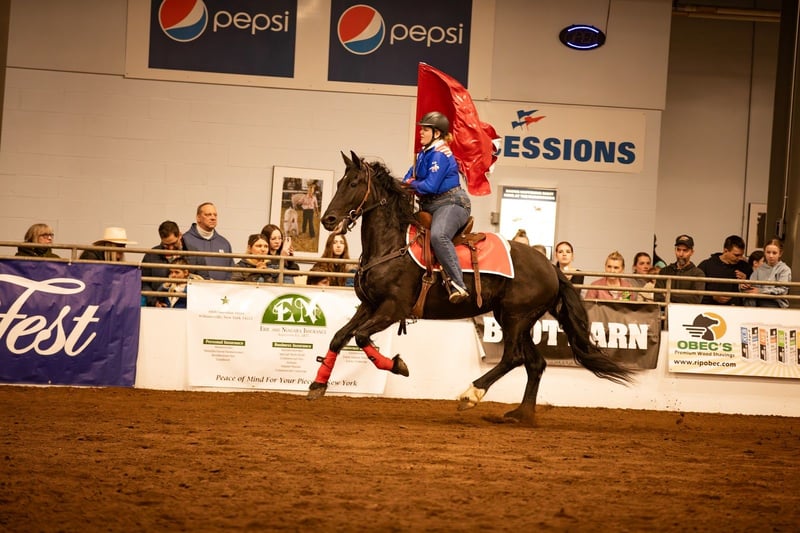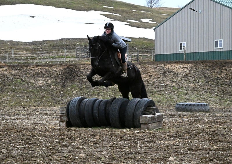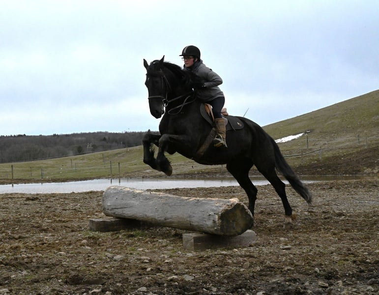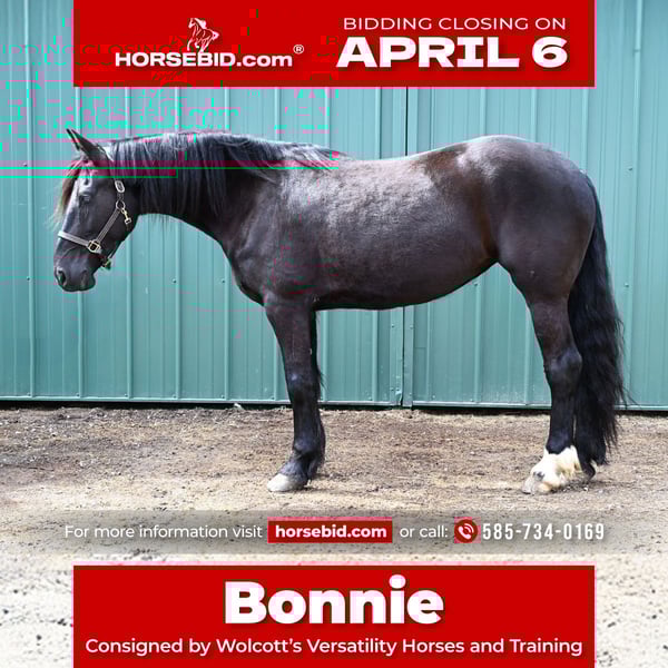 🌟𝑨𝒑𝒓𝒊𝒍 𝐀𝐋𝐋 𝐒𝐓𝐀𝐑 𝐋𝐈𝐍𝐄𝐔𝐏🌟 Happening now thru MONDAY | APRIL 6th - Available EXCLUSIVELY on HorseBid's website! For more details and to register visit: www.Horsebid.com CONSIGNOR CONTACT: Wolcott’s Versatility Horses and Training 585-734-0169 LOCATION: Warsaw, NY BREED: Friesian cross REGISTERED: Yes REGISTERED NAME: Bonnie COLOR: Black HEIGHT: 16.2 AGE: 5 GENDER: Mare ** Bonnie comes with a 2 week guarantee ** Meet Bonnie; she is a gentle, sweet registered Friesian Sporthorse who stands at a solid 16.2hh. As a 5-year-old, she has experience and training far beyond her years. This mare moves smoothly at the walk, trot, and canter. She has a natural self-carriage that makes her a dream to watch move. She responds well to seat and leg cues, all while staying soft in the bridle. She is smart and always willing to please, no matter the job. Because of her keen and steady demeanor, we have used her in our veterans' programs and for our lesson kids. She knows what a hard day’s work is like and will never complain about it. No matter what your skill level is, you will enjoy Bonnie! She has been ridden both English and Western. She has been used to move and sort cattle, has jumped a course, and has carried a flag on the drill team. There is no job this horse won’t do! Bonnie has a kind and expressive eye and loves to please! She has fantastic ground manners and stands tied for grooming, bathing, tacking, mounting, dismounting, and for the farrier and vet. She has been pastured with mares, geldings, minis, goats, sheep, and cows with no issues. If you don’t feel like riding, take her for a drive! She is one of the most versatile horses you will meet. Bonnie is a dream on the trails and in the mountains; she always knows where her feet are. Water crossings, bridges, and steep, rough terrain never deter her; she handles it all with ease. If you are looking for that mare that is perfect for any rider, Bonnie is for you! Contact Dayton Wolcott to come out and see her, or for additional questions, at 585-734-0169.