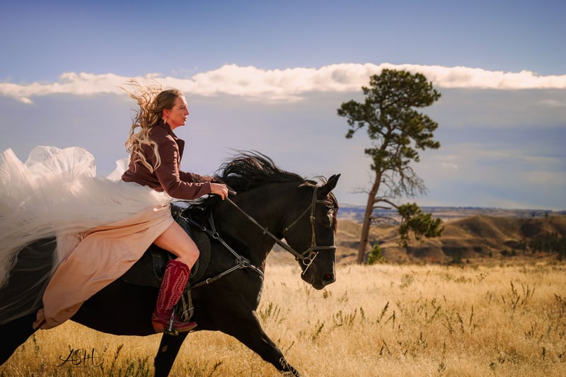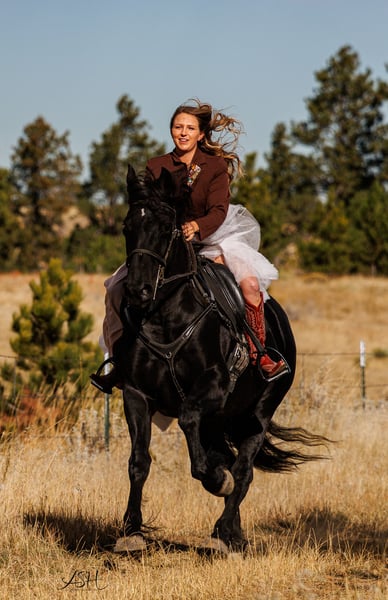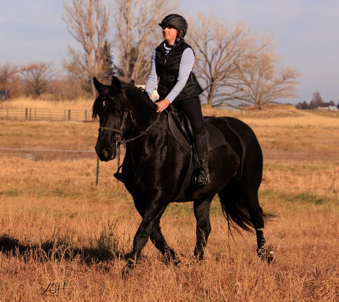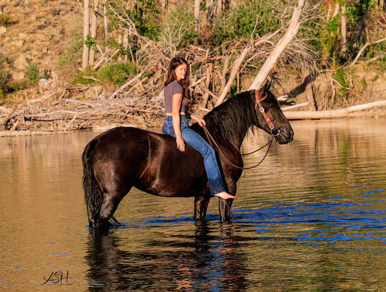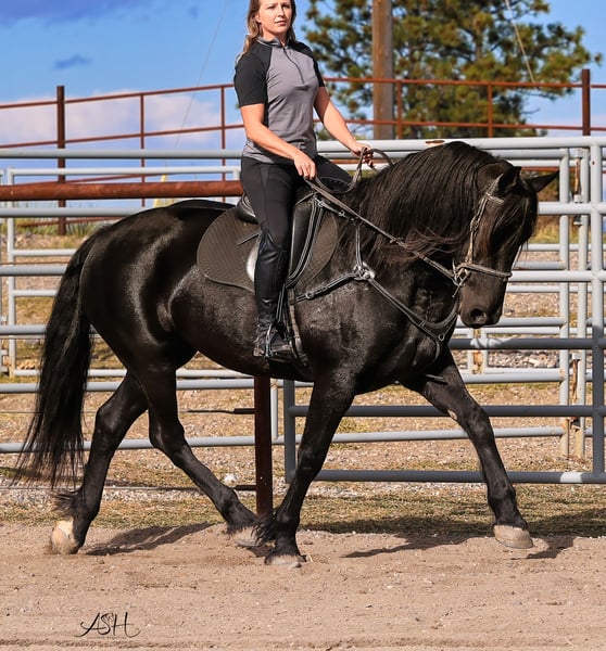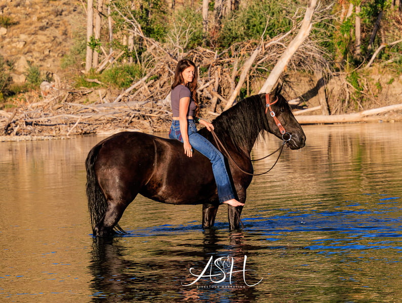 🎄𝐓𝐇𝐄 𝑯𝒐𝒍𝒊𝒅𝒂𝒚 𝐂𝐋𝐀𝐒𝐒𝐈𝐂🎄 Happening now thru MONDAY | DECEMBER 15th - Available EXCLUSIVELY on HorseBid's website! For more details and to register visit: www.Horsebid.com CONSIGNOR CONTACT: Miller Horses 406-380-1154 406-200-5039 LOCATION: Billings, MT BREED: Friesian Sport Horse Registry REGISTERED: Yes REGISTERED NAME: Sky View's Faith COLOR: Black HEIGHT: 15.3 AGE: 5 GENDER: Mare SKY VIEWS FAITH – 2020 FSHR Black Mare BY - Tetrino Van Het Kasteel x Jasper 366 Out of - R.A.M.’s Polly x Percheron Bred and raised right here at Miller Family Horses in Moore, Montana. She’s half Friesian, half Percheron—a good mix of elegance and strength. Faith is as gentle as they come, always first to the gate with a calm, steady way about her. She’s been around cattle, crossed water, and handled busy days without batting an eye. She drives well in single hitch, with plenty of experience from wagon rides and ranch chores. Under saddle, she’s lovely and coming along nicely, responsive to leg cues, picking up leads, and moving smooth through her walk, trot, and canter. She’s been used at the stockyards and has experience around cattle. On the ground, she’s easy to handle—good for the farrier, takes a bath no problem, and stands quiet for the mounting block. She’s an easy keeper, too. Faith is a solid mare, good-looking and reliable, a true product of our breeding program. She would make a great family, trail, dressage, or a super fancy ranch horse. FMI: Call 406-380-1154(can NOT receive text) send Text messages to 406-200-5039