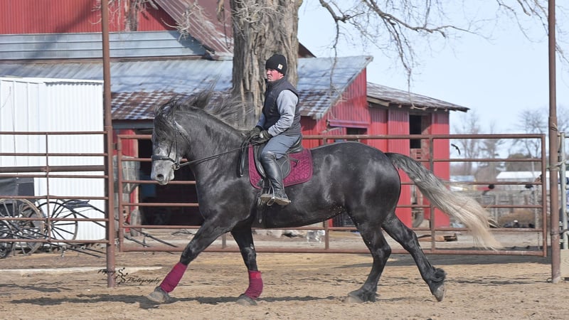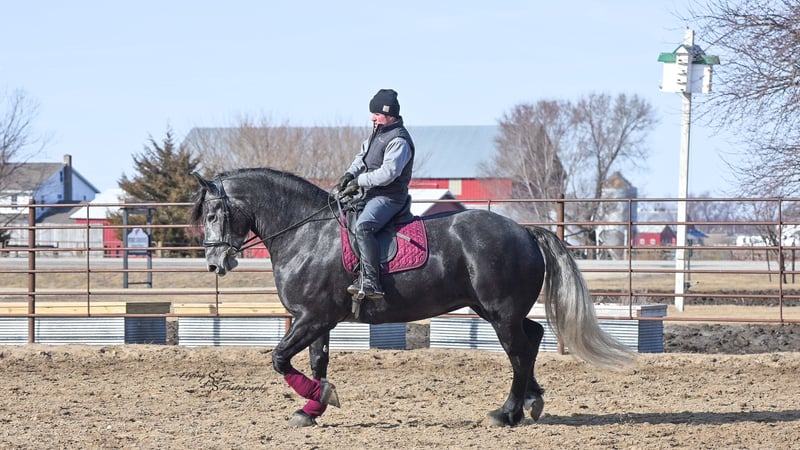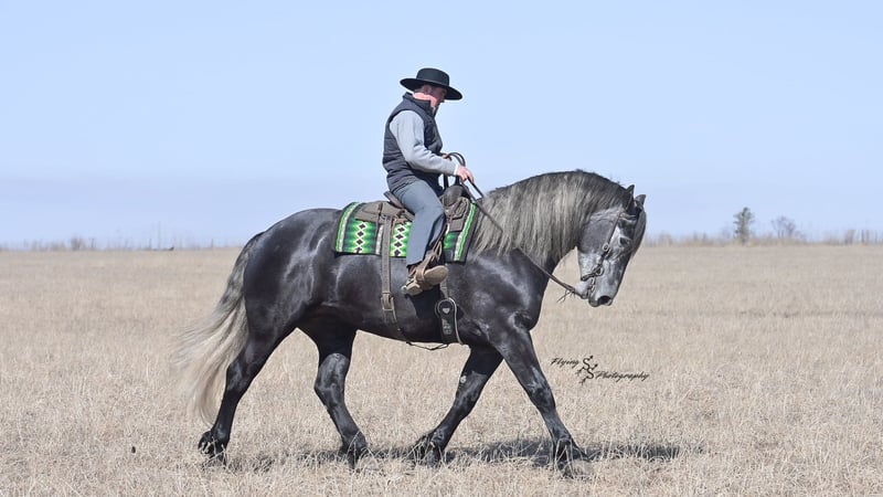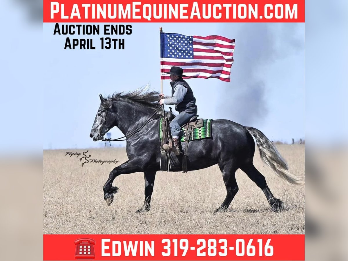 ONLINE AUCTION Place your bids at www.PlatinumEquineAuction.com Starting Bid $3500 Auction ends April 13th, 2025 Need a new saddle? Check out White Rock Saddles on our website or Facebook! If you’re looking for a show stopper, look no further! Kayla is a 5 year old registered Friesian Sporthorse. She is a knockout cross between a Friesian and a Percheron. Kayla stands 16.3 and has conformation that is as beautiful as her gray color. She rides well in the arena and outside on the trails. Kayla is traffic safe, and is used to being around other large and small livestock as well as pets and children! She will ride through an open field, down the trails, across water, through all obstacles, and down busy highways. Kayla will one-hand neck rein or plow rein, she is very soft in the bridle and leg cues. She knows how to side pass, pivot, lope correct circles picking up her leads, open and close gates, can be mounted from a mounting block or fence, and so much more! Kayla is easy to catch and does well in a stall or pasture setting, plus gets along well with other horses. She is quiet, gentle to be around, and so easy to handle. She easily picks up all of her feet, and is good for the farrier. Kayla could go so many directions, and has an excellent foundation to take her there. Whether you want to ride western, english, bareback, or simply trail ride, she is a great fit! Along with all of her experience in western riding, Kayla has been started in dressage and jumping. She is doing great with lead departures and laterals. Kayla moves beautifully, and definitely has a natural talent. She is not for a beginner, but is ready to go any direction in her training. Kayla is a very well rounded mare that will make someone a very high caliber horse! Even with time off, in the pasture or a stall, she rides off great. This outstanding mare has a solid foundation and stays honest whether she is being handled under saddle or on the ground. Kayla is current on Coggins, and also has a current PPE on file. If you have any questions, or would like to meet Kayla prior to the auction ending, please call Edwin Raber 319-283-0616 we are located in Fairbank, IA. ONLINE AUCTION Place your bids at www.PlatinumEquineAuction.com Starting Bid $3500 Auction ends April 13th, 2025 Need a new saddle? Check out White Rock Saddles on our website or Facebook!