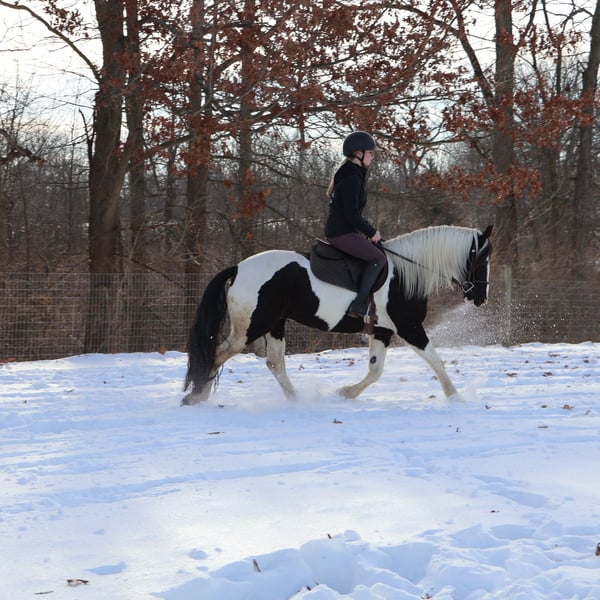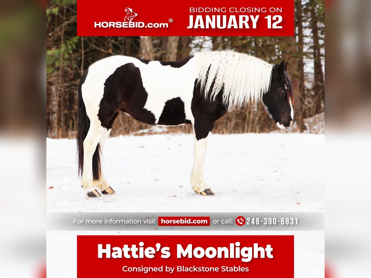 ♦️𝐍𝐄𝐖 𝐘𝐄𝐀𝐑'𝐒 𝑬𝒙𝒕𝒓𝒂𝒗𝒂𝒈𝒂𝒏𝒛𝒂♦️ Happening now thru MONDAY | JANUARY 12th - Available EXCLUSIVELY on HorseBid's website! For more details and to register visit: www.Horsebid.com CONSIGNOR CONTACT: Blackstone Stables 248-390-6831 LOCATION: Howell, MI BREED: Friesian Heritage Horse REGISTERED: Yes REGISTERED NAME: Hattie’s Moonlight Dream COLOR: Black and white paint HEIGHT: 15.1 AGE: 7 GENDER: Mare Haite's Moonlight Dream, or Dream as we call her at home nothing short of spectacular from her mind to her color, to her breeding there’s nothing she’s lacking. Dream is a 15.1hh stout made, friesian heritage horse. she is sired by the legendary Haite fan North Ster and out of a paint Haflinger cross mare. She is 7 years old. Dream has an incredible mane and tail and light feathering. She has gorgeous conformation. Not only is as stunning as a horse who walked right out of a fairy tale she is sensible. Dream will walk, trot and canter with ease. All of her gaits are as comfortable as floating on a cloud. She has had years of natural horsemanship training and will ride completely tackless at the walk, trot, canter and even over jumps. She moves off of your seat and leg effortlessly. She has been in the city, in traffic, in the woods and in water. She has been in the arena and the fields. This girl will go anywhere with any rider onboard. She goes English, Western and even bare back. She knows how to drive and loves it. Dream has all the bells and whistles when it comes to her trick training. She will sit, lay down, say yes and no and will rear up on command. She listens to her persons ques with the most attention and respect. Dream has been trained by the absolute best in the business. She has seen tarps, umbrellas, balls, bridges, inflatable dinosaurs and much more. You will be hard pressed to spook her. This mare has been on several hunter paces. She has also been used to round cattle. In the arena she jumps in beautiful form. She has been to schooling shows and used in lessons for kids as young as 5 years old. This is a unique find that would be an asset to anyone looking for a feathered horse that anyone can get along with anyone in any situation. Dream has been a very loved family member only having one owner since she was a baby. She is only being offered for sale to the best of homes as her owner has a few upcoming babies to bring along. Please watch her video, she speaks volumes for her self. Please call or text Ellesse Schwartz at 248-390-6831. Dream lives in Howell, MI 48855