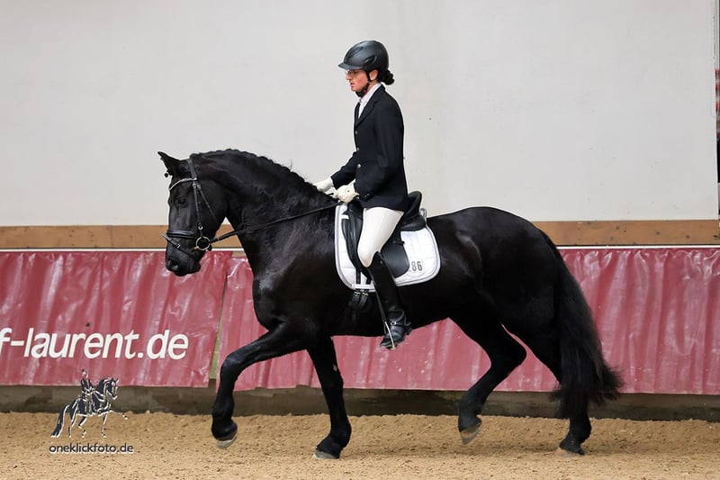 I am selling my beautiful 7-year-old Friesian mare, suitable as a breeding mare or leisure horse (trail riding horse). Her height is approximately 1.65 m. Unfortunately, due to having arthritis, she is only conditionally rideable. She can only be given to the very best hands. Pedigree: Father: Omer 493 Mother's father: Wibe 402 She is regularly dewormed, vaccinated, presented to the farrier (every 7 weeks), has her teeth checked, and a complete blood count is done every few years. She is also familiar with trailer loading, competition atmosphere, trail rides or walks alone, cross-country trails, and groundwork. If Helmie has piqued your interest, feel free to message me for more information or to schedule a viewing. Location: 82234 Best regards, Markus