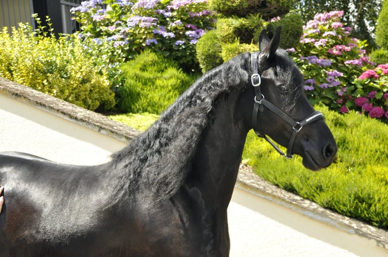Una yegua Friesian muy cariñosa y grande de los Países Bajos, con un hermoso y largo flequillo. Tiene un físico correcto, una cabeza pequeña y preciosa, y su carácter es simplemente un sueño. No muestra en absoluto un comportamiento típico de yegua, es un animal muy agradable. En su trato es extremadamente dulce, tranquila y segura de sí misma. En el trabajo, tiene una actitud diligente y siempre trabaja bien, además de ser valiente. Ha sido montada en los tres aires básicos (pase, trote y galope). Por tanto, si buscas una yegua excepcional y única, aquí la tienes. Este año tuvo su primer potrillo, que fue muy fácil de manejar. Además, fue una madre muy cariñosa y ejemplar. Por favor, las consultas solo por teléfono.